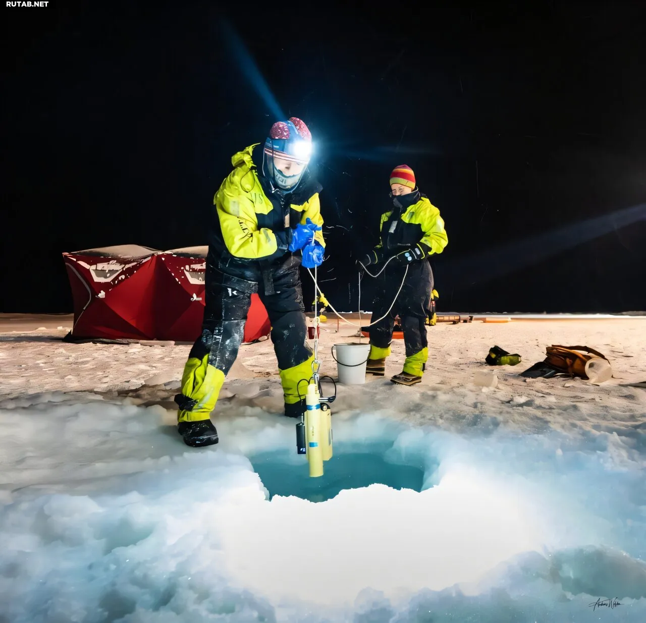 Исследователи берут пробы воды из-подо льда для проекта «Наследие Нансена». Автор: Андреас Вольде