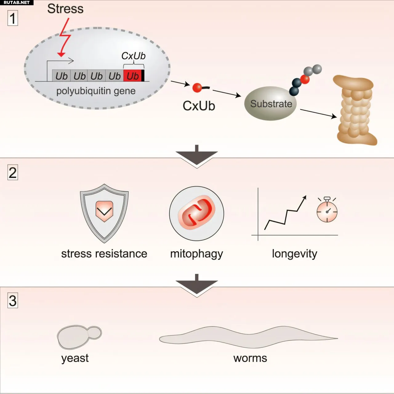 Исследователи обнаружили, что в ответ на стресс клетки пекарских дрожжей и нематод используют уникальную форму-предшественник убиквитина — CxUb. Хотя этот предшественник присутствует у всех эукариот, до сих пор его считали неактивным и не изучали.