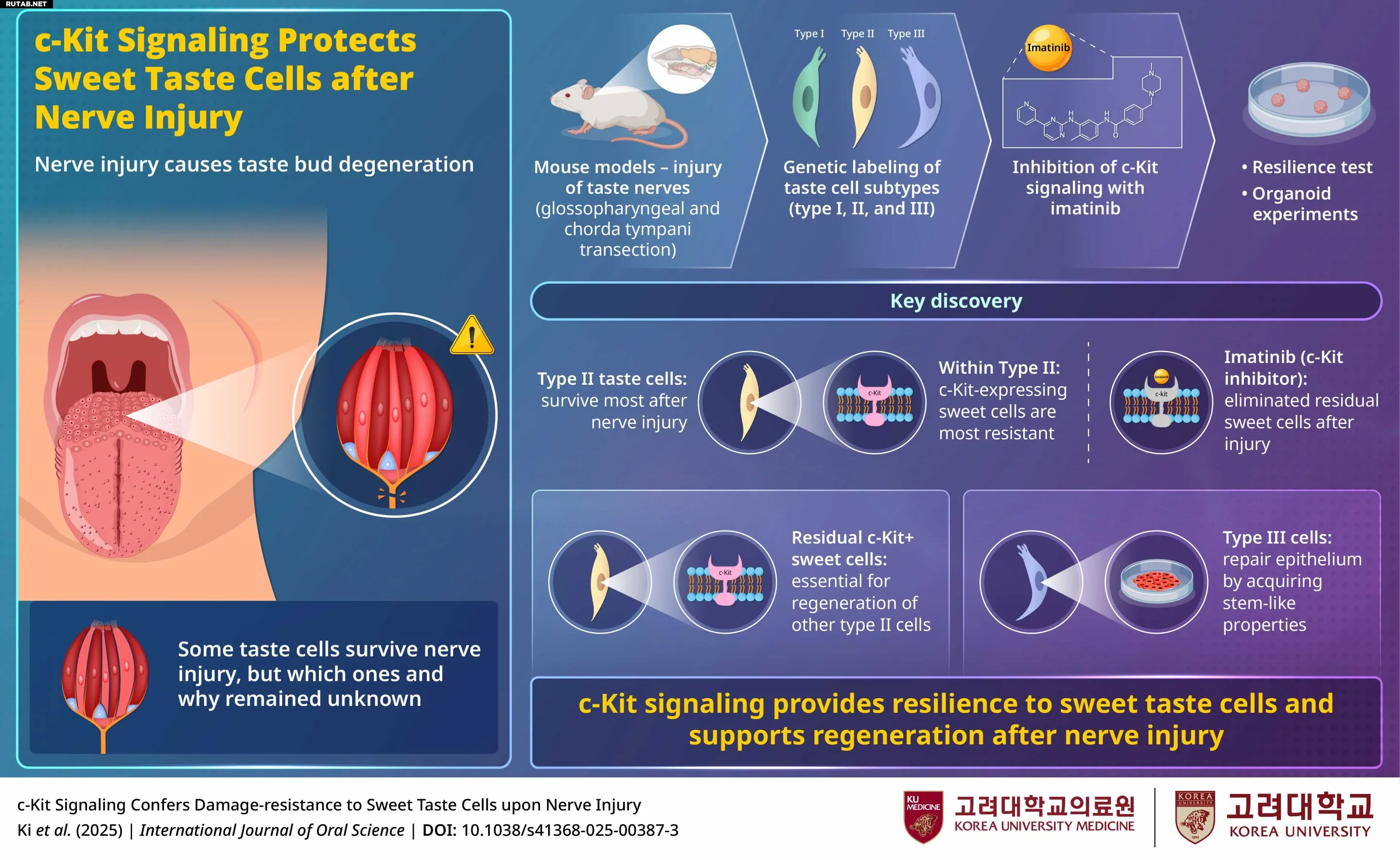 Исследователи из Медицинского колледжа Корейского университета обнаружили, что клетки, отвечающие за восприятие сладкого вкуса, демонстрируют удивительную устойчивость к повреждению нервов благодаря белку c-Kit. Исследование, опубликованное 10 сентября 2025 года в International Journal of Oral Science, показало, что блокировка этого белка препаратом иматиниб приводит к исчезновению выживших «сладких» клеток и нарушает восстановление вкусовых рецепторов.