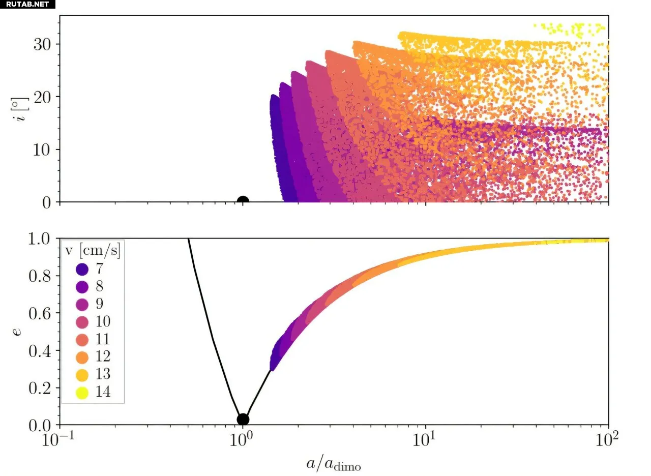 Начальные орбитальные элементы частиц выброса. Автор: arXiv (2025). DOI: 10.48550/arxiv.2509.20197
