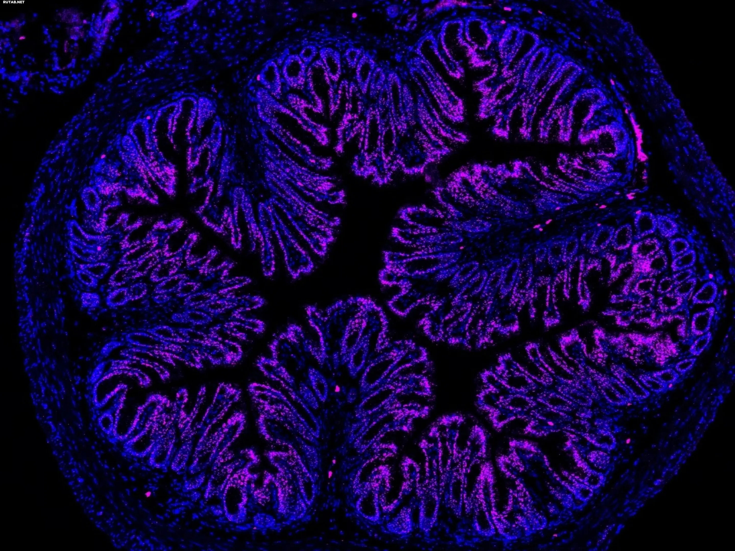 Флуоресцентные наночастицы (фиолетовые), несущие лекарство для лечения боли, накапливаются в клетках толстой кишки мыши. Автор: Bunnett Lab/NYU