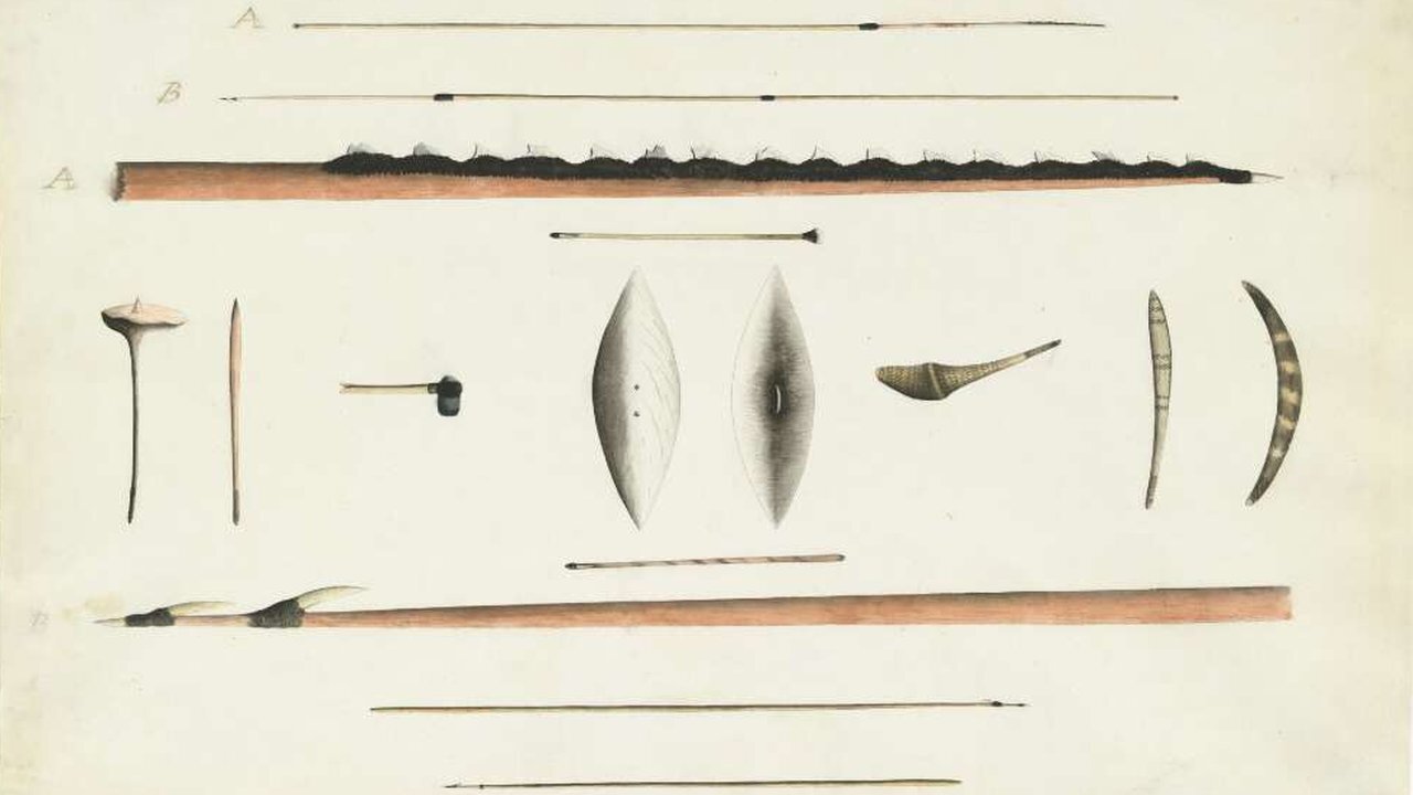 Охотничьи инструменты и оружие аборигенов. Акварель, художник Порт-Джексон, 1788–1792. Автор: Национальная библиотека Австралии