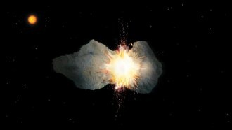 Иллюстрация столкновения двух астероидов. Credit: Europlanet/T Roger