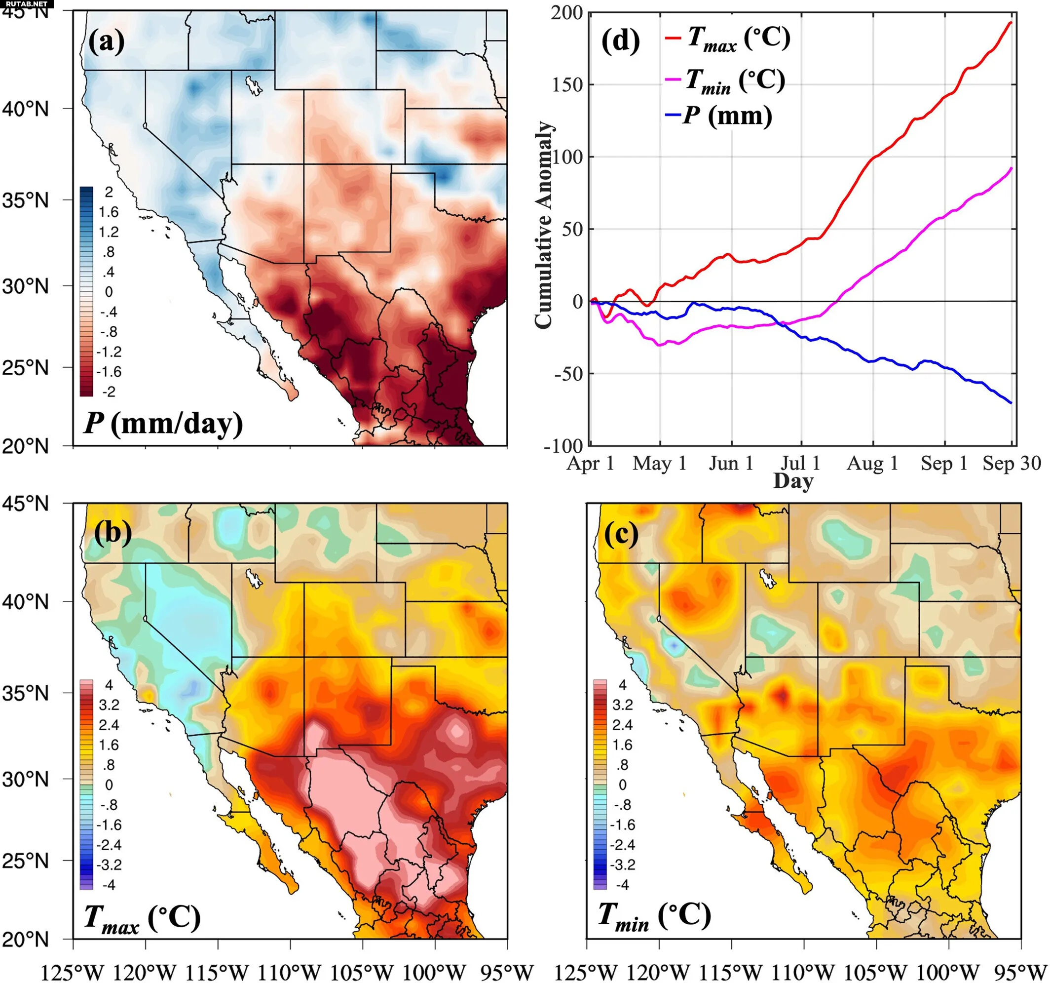 Согласно новому исследованию, сухие почвы в северной Мексике могут вызывать эпизоды одновременной засухи и аномальной жары за сотни километров — в юго-западных штатах США, таких как Аризона, Нью-Мексико и Техас. Эти «горячие засухи» в регионе всё чаще сохраняются в течение последовательных дней и ночей, не ослабевая после захода солнца, что лишает пострадавшие районы возможности восстановиться.