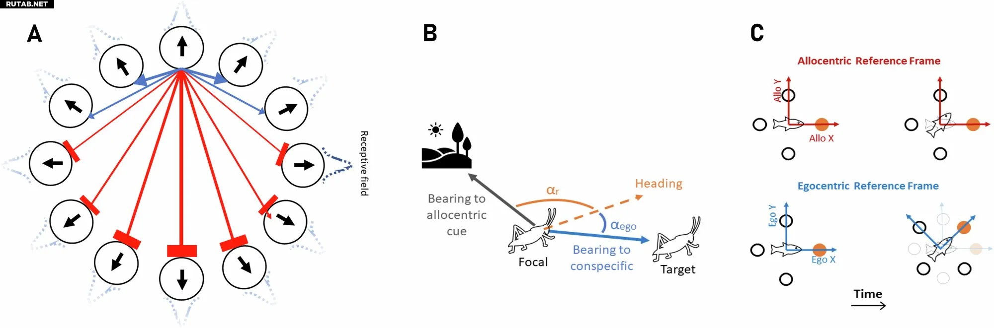Исследование также показало, что животные могут переключаться между аллоцентрическим (ориентированным на мир) и эгоцентрическим (ориентированным на собственное тело) представлением пространства. Быстрое переключение между этими режимами улучшает координацию и стабильность в группе.