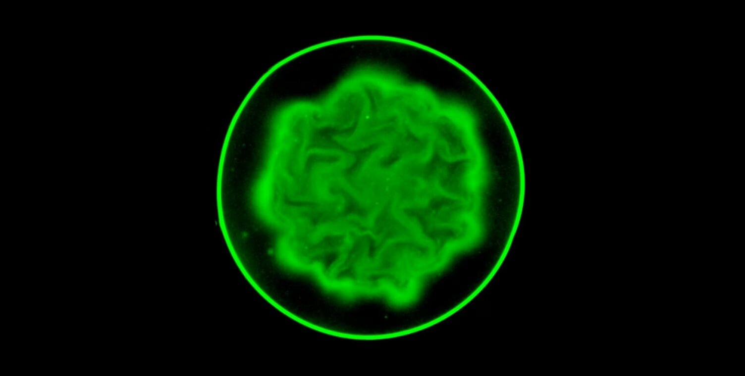 Используя конфокальный флуоресцентный микроскоп, ученые наблюдали эти процессы с высоким разрешением. При достаточно больших каплях и высокой концентрации бактерий эти сложные структуры можно увидеть невооруженным глазом.