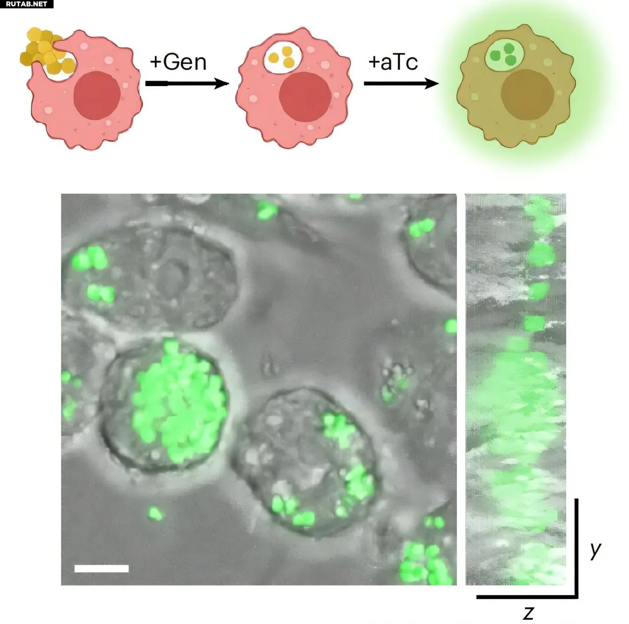 Иммунные клетки, зараженные люминесцентным штаммом S. aureus и обработанные гентамицином для удаления других бактерий, не живущих в клетке. Автор: Nature Microbiology (2025). DOI: 10.1038/s41564-025-02124-2