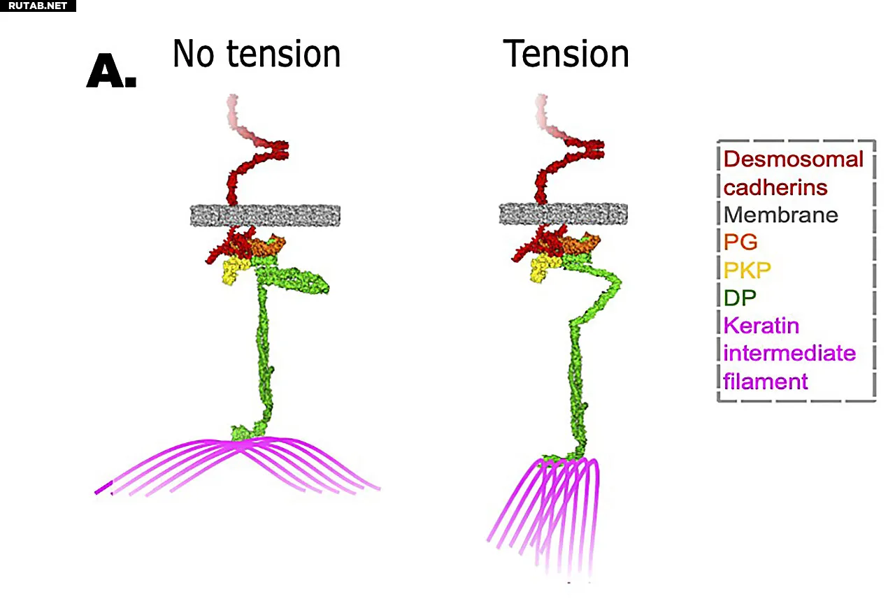 Ученые раскрыли, как белок десмоплакин «чувствует» механическое напряжение в клетках