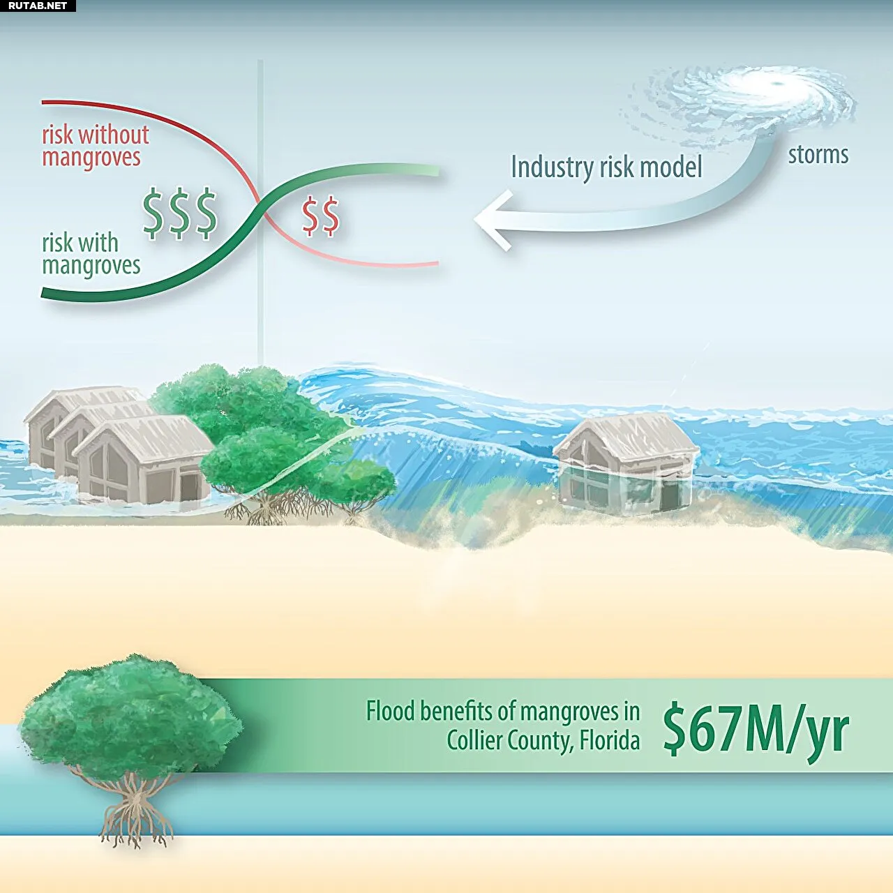 Исследование является первым, в котором оценивается польза мангровых лесов с использованием отраслевых моделей катастрофических рисков. Мангровые леса с их уникальными воздушными корневыми системами процветают в морской среде и могут фильтровать соленую воду в пресную. Во Флориде, по оценкам департамента охраны окружающей среды штата, около 600 000 акров мангровых лесов способствуют общему здоровью южной прибрежной зоны штата и за её пределами.