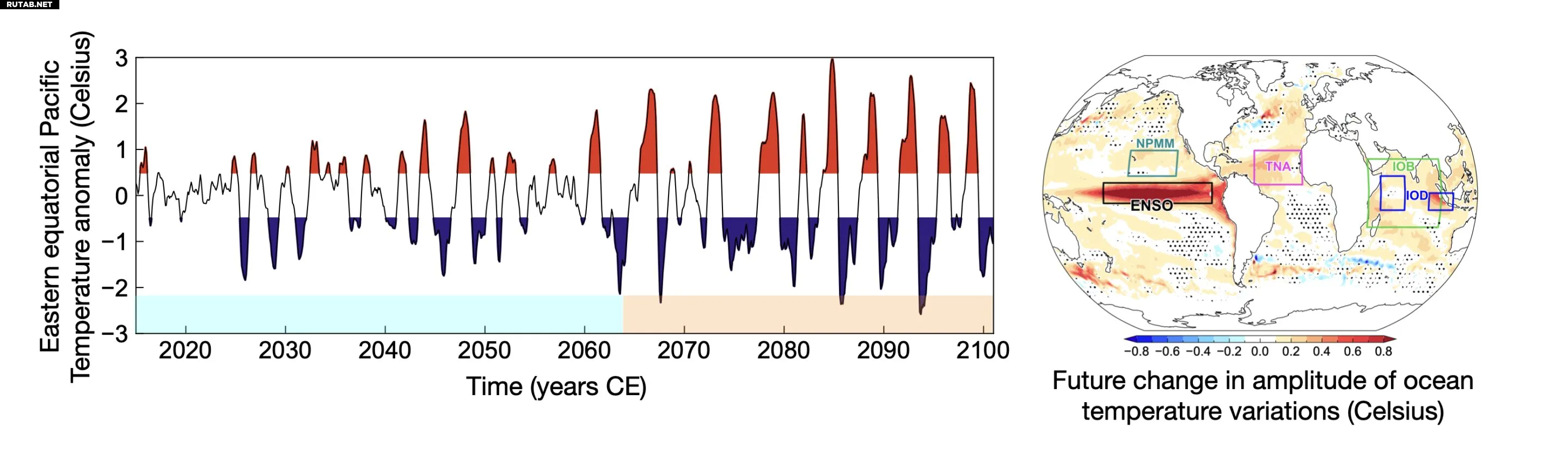 Используя высокоразрешающие климатические модели, международная команда исследователей обнаружила, что ENSO может резко усилиться в ближайшие десятилетия и синхронизироваться с другими крупными климатическими явлениями, изменяя глобальные температурные и осадочные модели к концу XXI века.