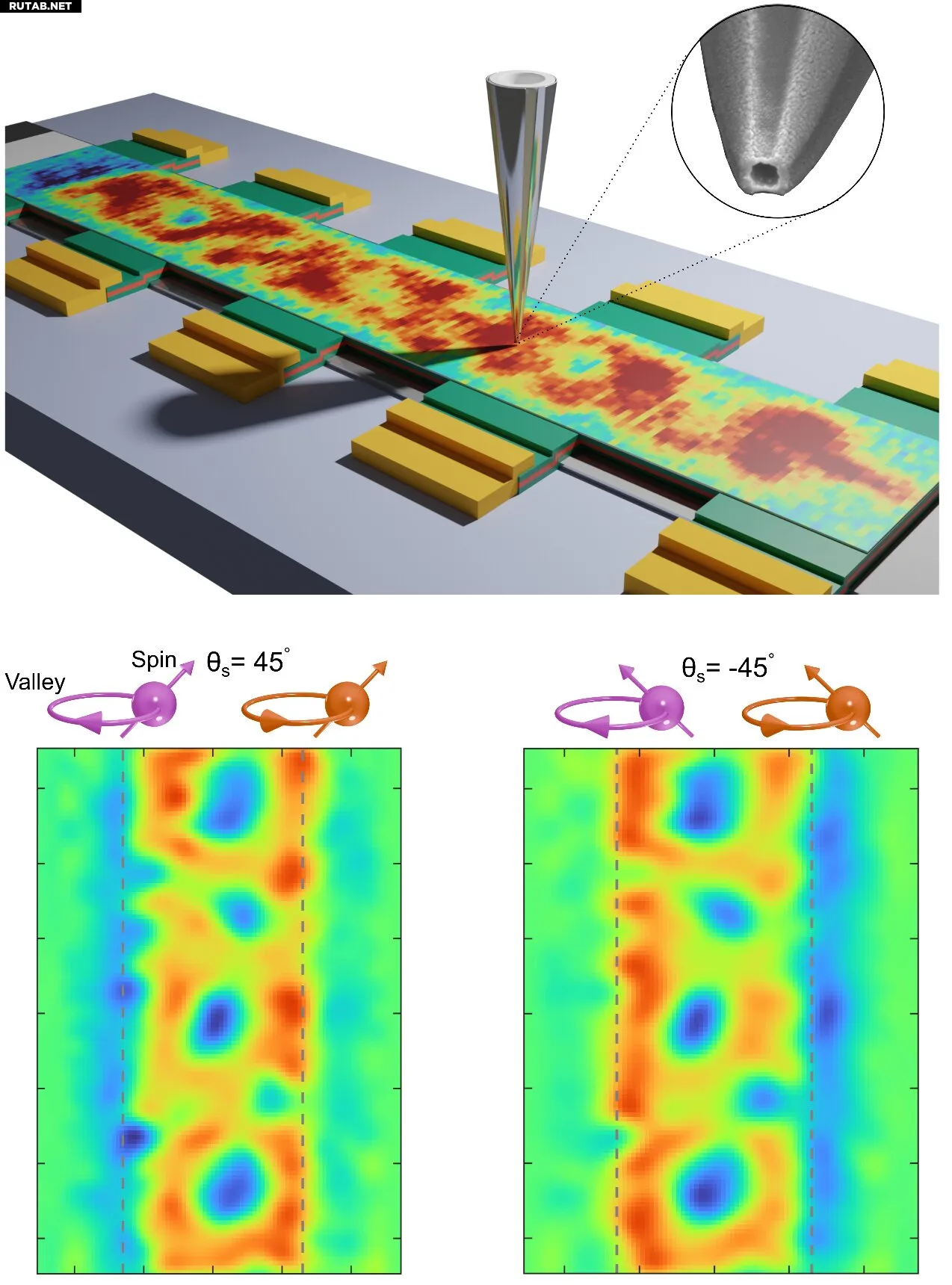 «Мы обнаружили, что в полуметалле спины имеют очень слабую анизотропию — поля всего в десятки миллитесла достаточно, чтобы наклонить спины в любом направлении, тогда как в фазе четвертьметалла спины сильно закреплены вдоль поляризованного внеплоскостного направления долины», — сказал доктор Дутта.
