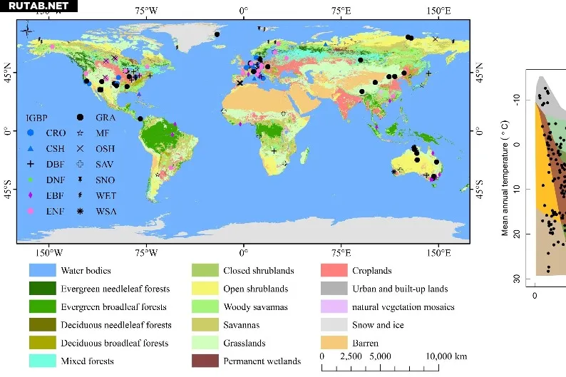 FLUXNET — это глобальная сеть микрометеорологических вышек. Результаты перекрестной проверки на основе 120 глобальных станций FLUXNET показали, что модель eLUE демонстрирует отличную точность и стабильность.