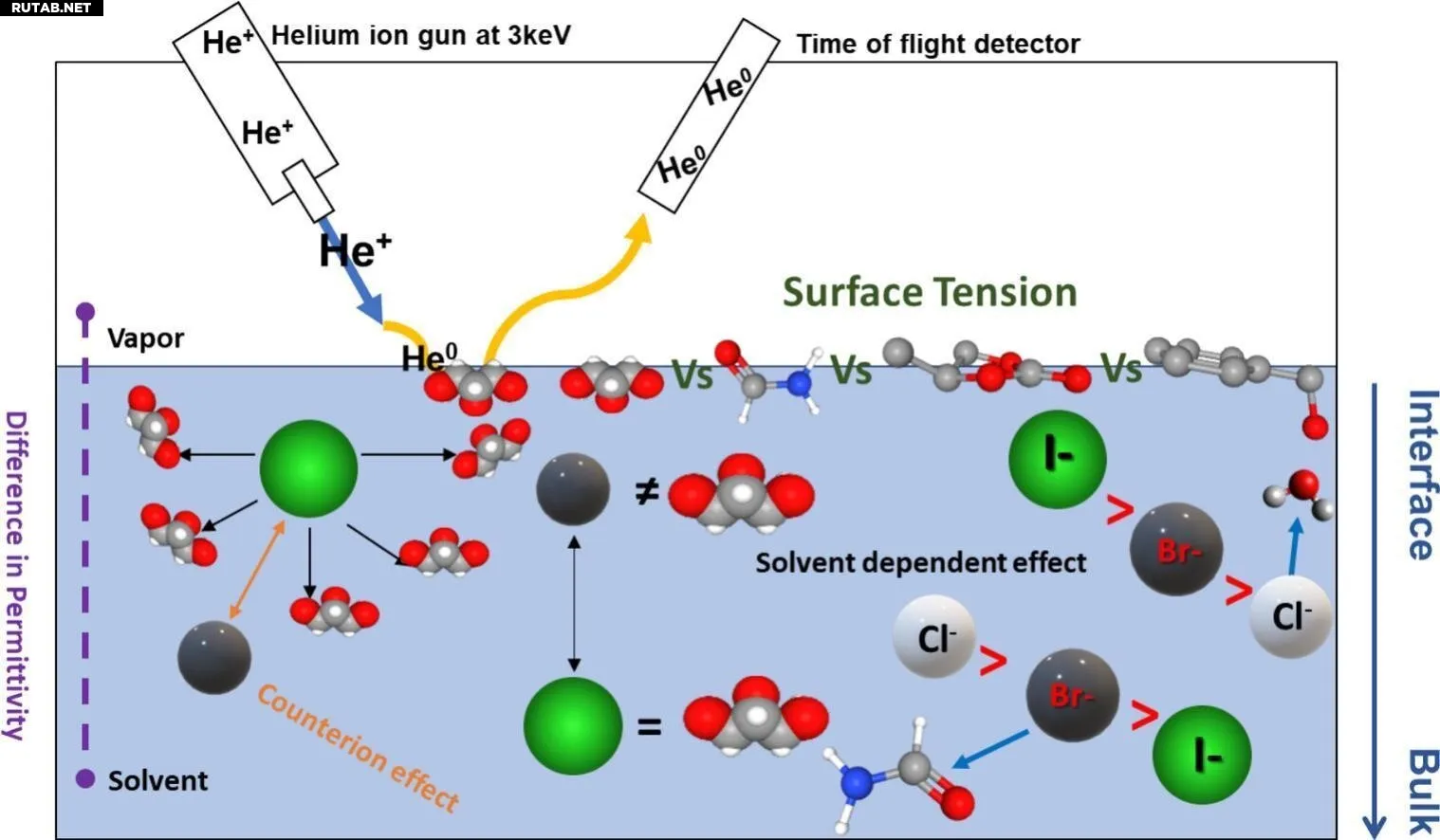 В новом международном совместном исследовании эксперты использовали технику, называемую «спектроскопия рассеяния ионов», на ряде растворителей, чтобы понять границу раздела между воздухом и каплями воды в атмосфере.