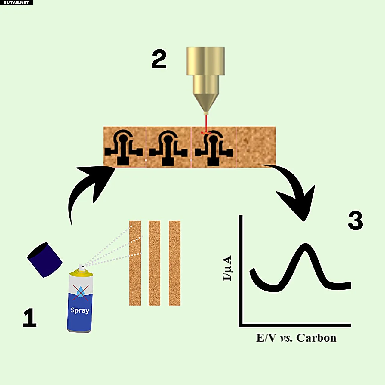 Образцы были подвергнуты лазерной маркировке для превращения их в графен — высокопроводящую форму углерода, как если бы сконцентрированный свет рисовал пути в пробке. «Этот процесс устойчив, не требует токсичных реагентов и дает высокопроводящий материал, что очень важно, поскольку нитрит подвергается хорошо известному электрохимическому окислению. Следовательно, нам нужен высокопроводящий датчик для обнаружения соединения», — объясняет Жанегиц.