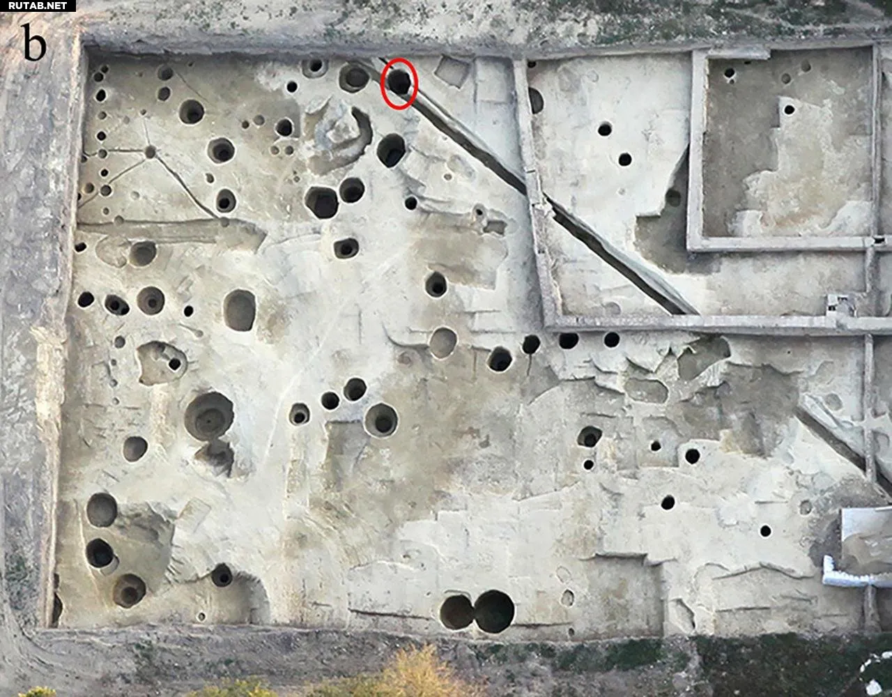Семь полных скелетов были сложены в колодце диаметром два метра и глубиной три метра в беспорядочном порядке, некоторые — вниз головой. Радиоуглеродный анализ и монета, отчеканенная в 251 году, позволили датировать захоронение второй половиной III века. Вертикальная стратификация и наличие плоти на момент погребения указывают на то, что тела сбросили в колодец сразу после насильственной смерти.