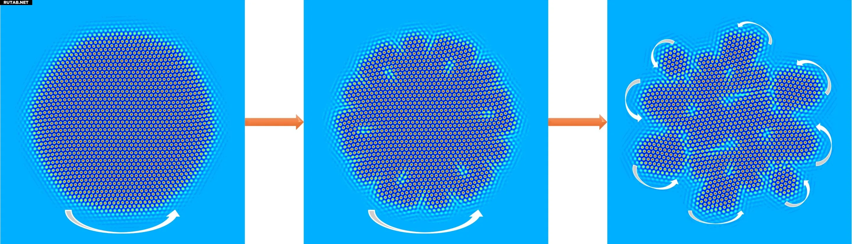 Спонтанное фрагментирование вращающегося кристалла. Автор: Wayne State University/Zhi-Feng Huang