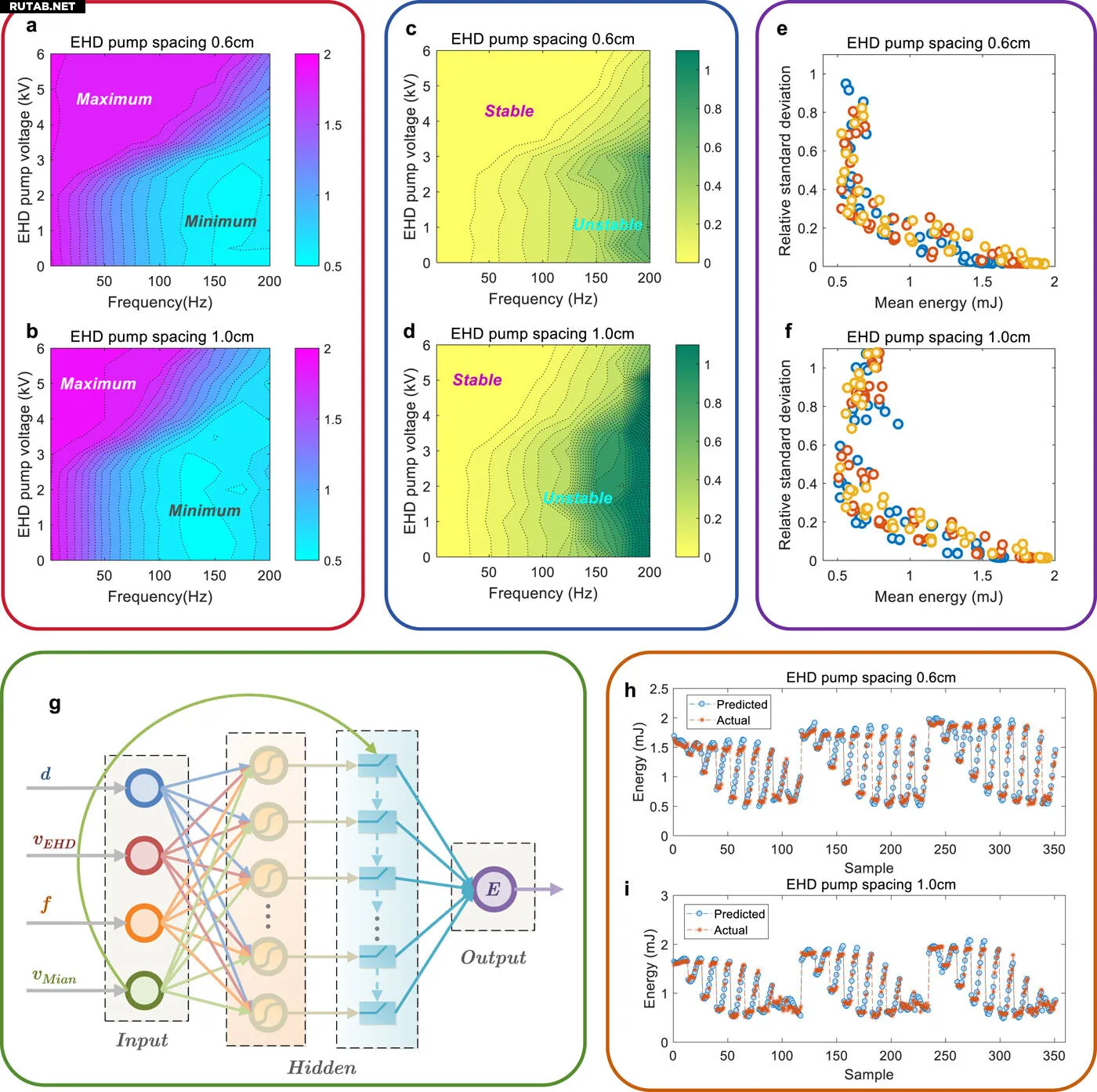 Для решения этих проблем исследователи заменили механические насосы многополостной коронной электро-гидродинамической (EHD) помпой. Это устранило необходимость в движущихся частях и уменьшило объем системы до Ø130 мм × 300 мм. Используя самостоятельно разработанную неинвазивную точечную шлирен-велосиметрию, исследователи измерили скорость потока газа внутри лазерной полости в 1,27 м/с.