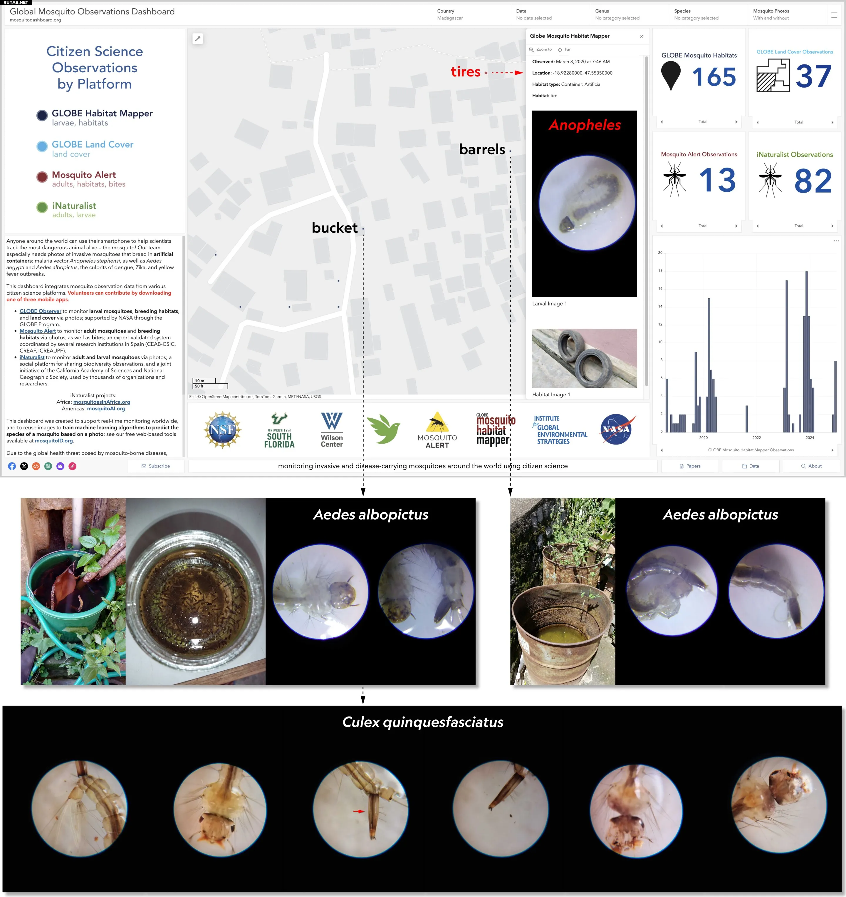 Глобальная панель наблюдений за комарами показывает наблюдения гражданской науки по платформам. Автор: USF