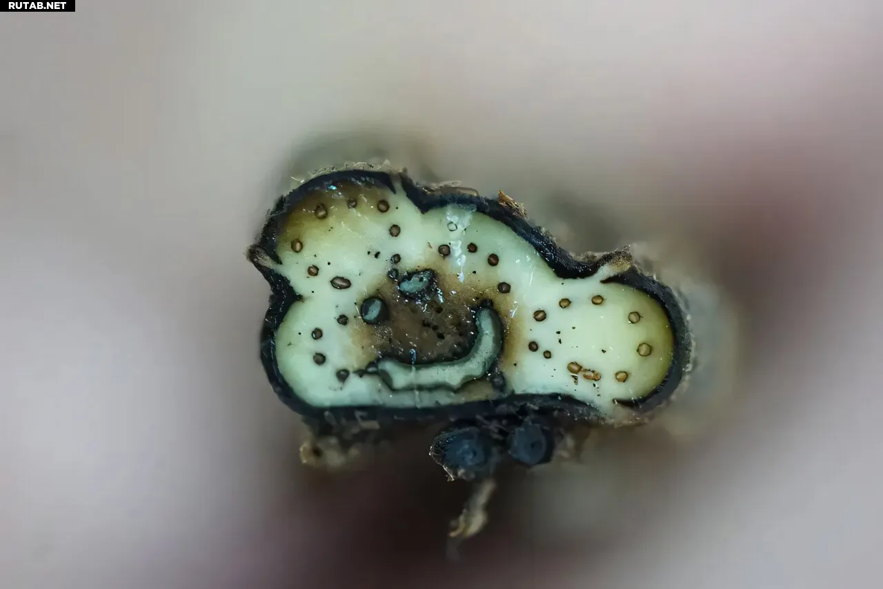 Когда листья смещаются на спинную сторону стебля папоротника, в сосудистой структуре стебля возникает узор, напоминающий смайлик, как видно на этом образце табачного папоротника. Автор: Университет Теннесси