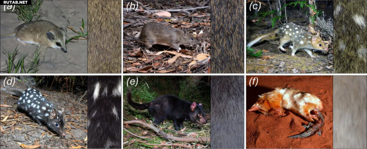Иллюстрация вариаций окраса шерсти сумчатых. Фотографии животных: (a) Лахлан Копеланд, (b–e) Бретт Верко и (f) Майк Гиллам. Автор: Biology Letters (2025). DOI: 10.1098/rsbl.2025.0302