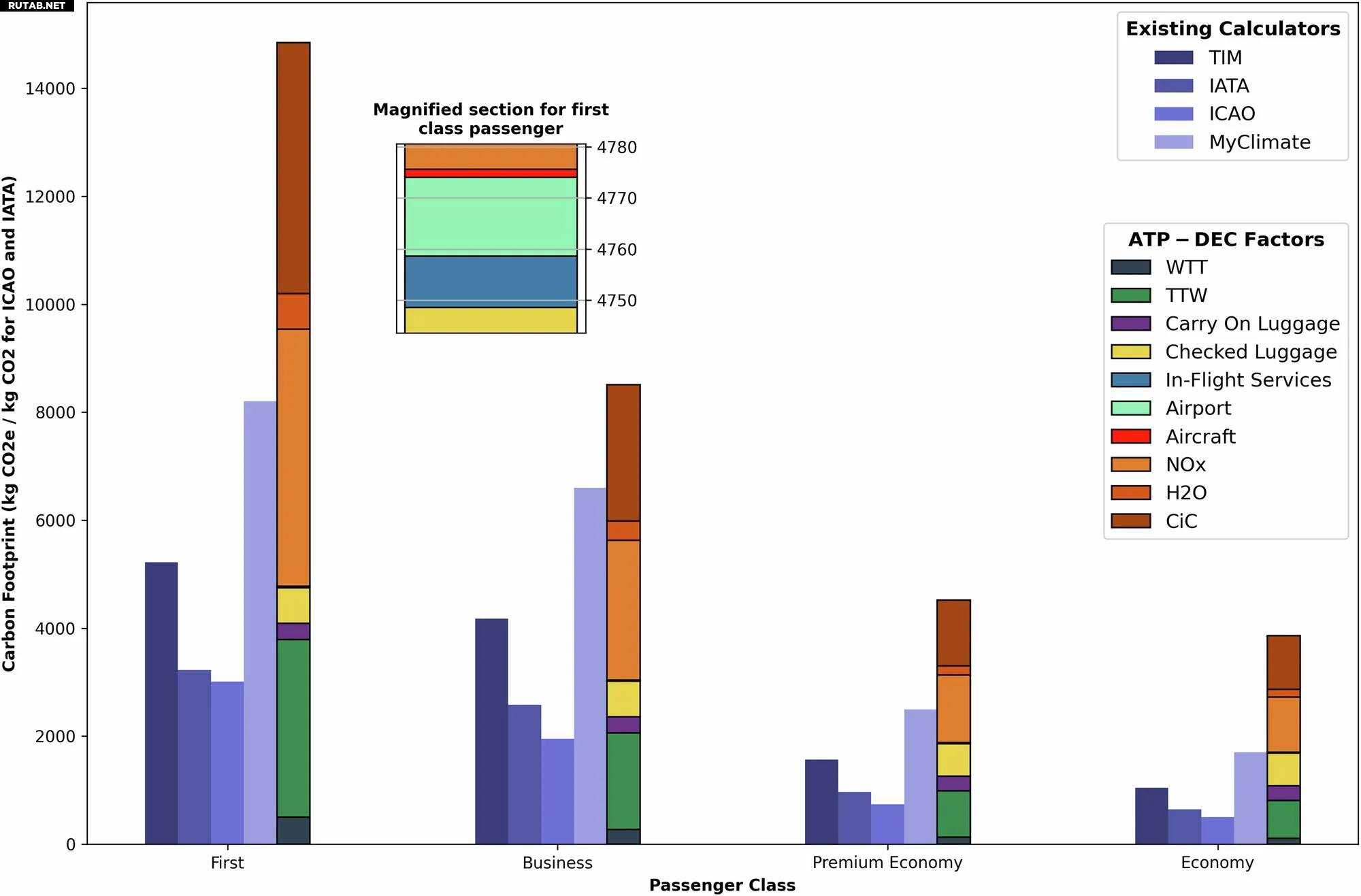 Новый инструмент ATP-DEC учитывает полный жизненный цикл полёта, включая не только CO2, но и другие факторы потепления: оксиды азота, водяной пар и облачность от инверсионных следов. Эти «некиотские» воздействия могут более чем вдвое превышать выбросы CO2 от полёта.