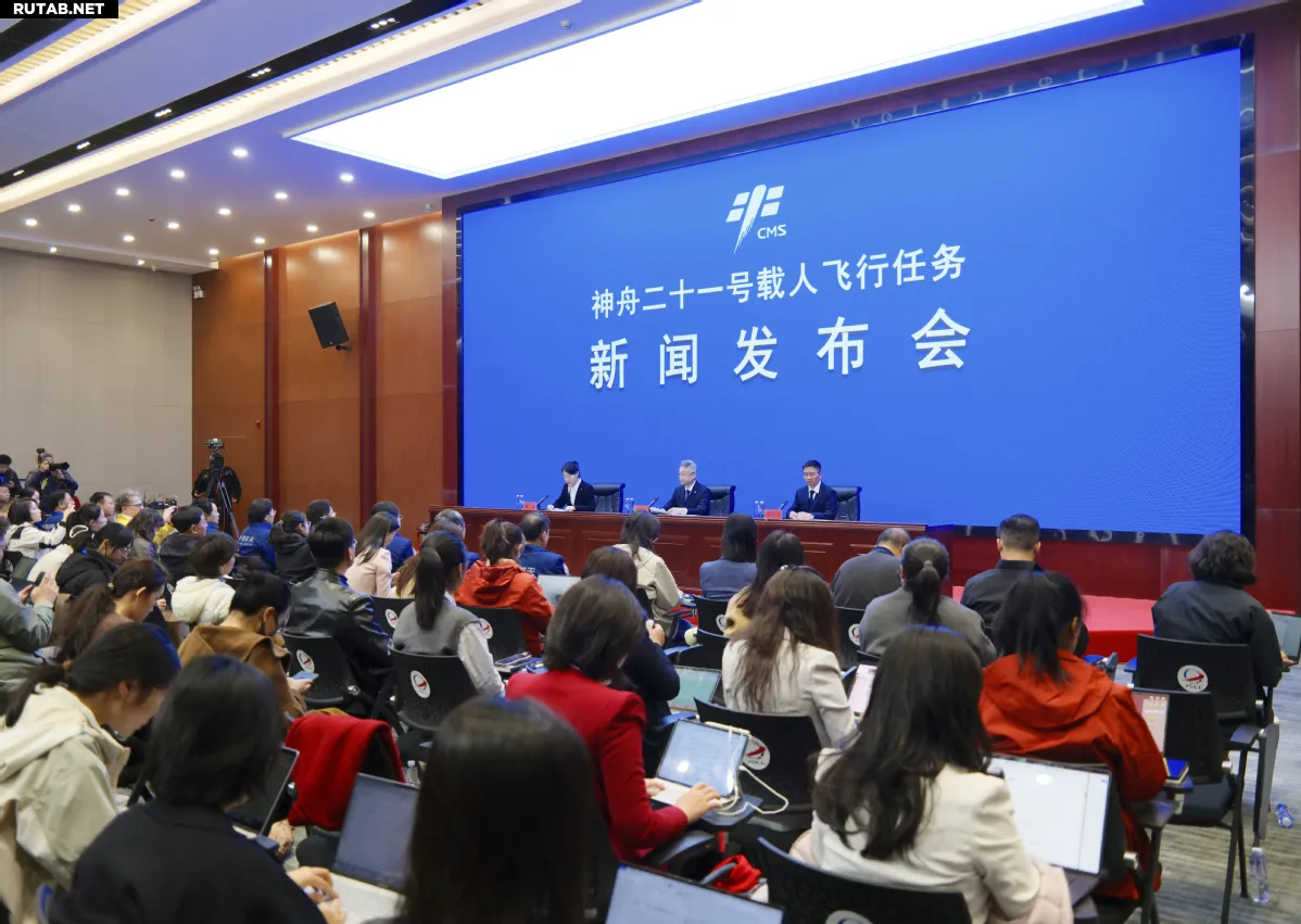 Пресс-конференция по пилотируемой миссии «Шэньчжоу-XXI» в Центре запуска спутников Цзюцюань на северо-западе Китая, 30 октября 2025 года. [Фото/Xinhua]
