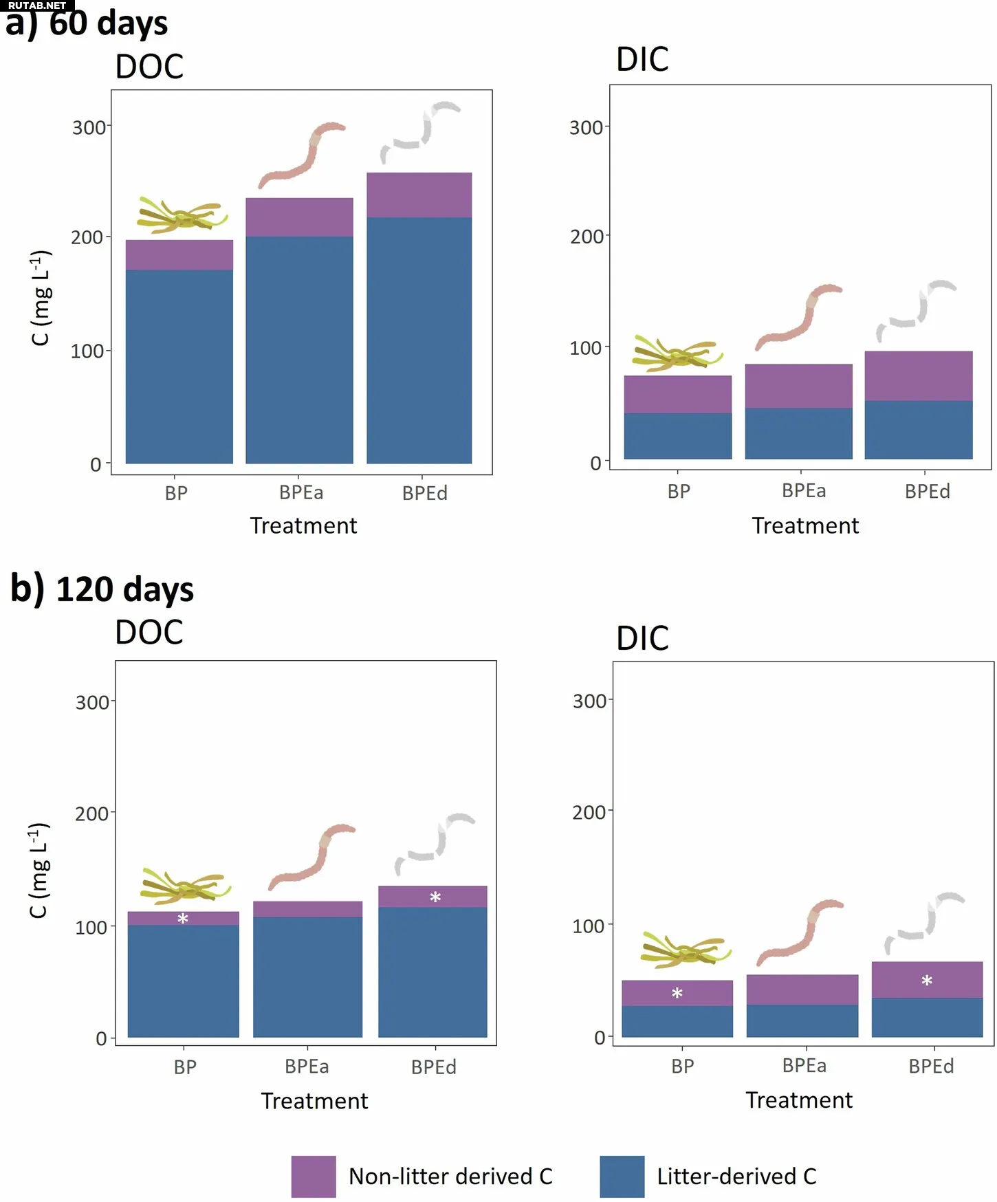 Результаты показали, что мёртвые черви увеличили улавливание углерода в растворённой форме в среднем на 16%. Также было обнаружено, что они приводят к такому же увеличению стабилизации органического углерода, как и живые особи.