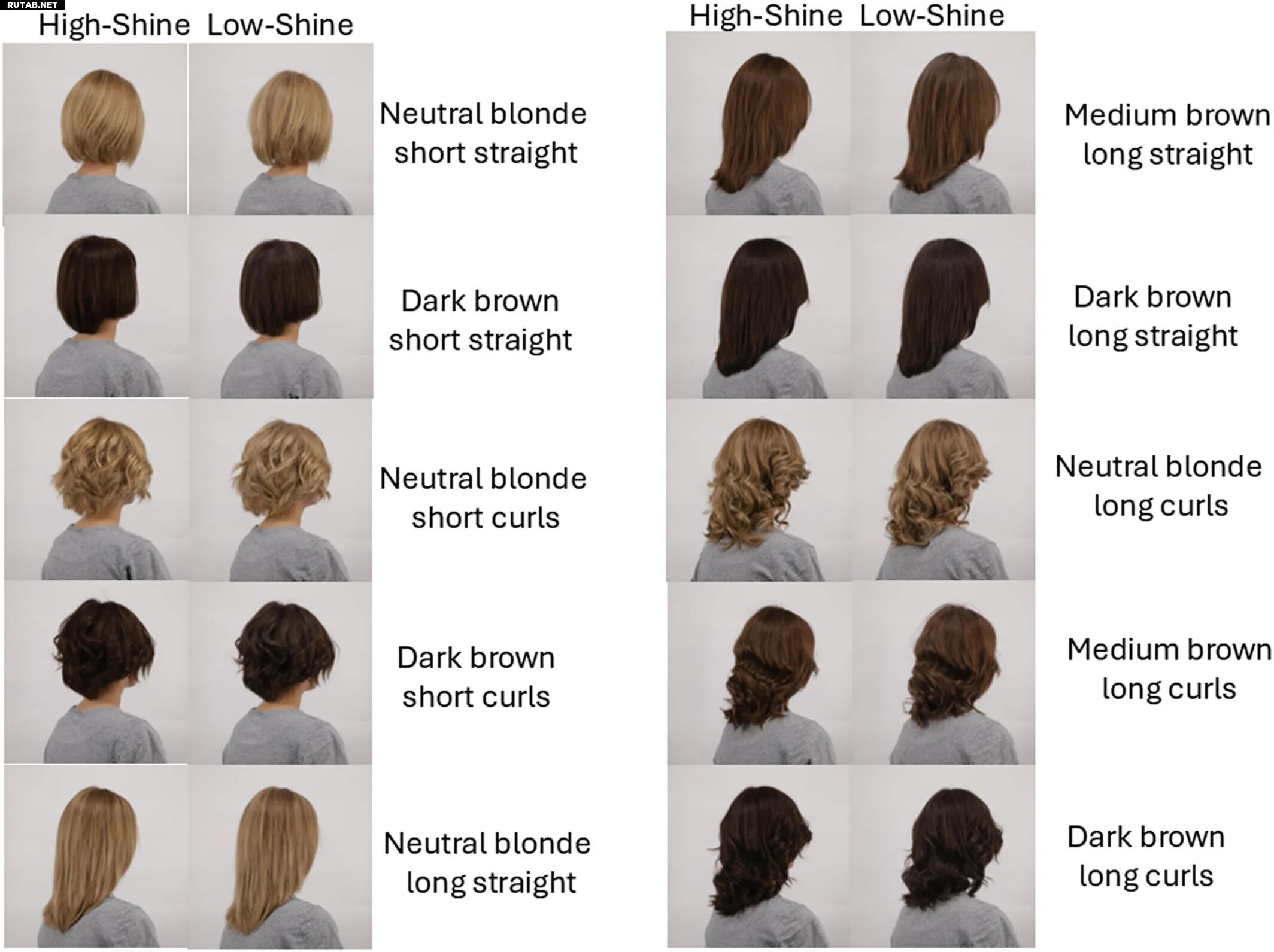 Версии волос с высоким и низким блеском, созданные из натуральных париков. Источник: International Journal of Cosmetic Science (2025)