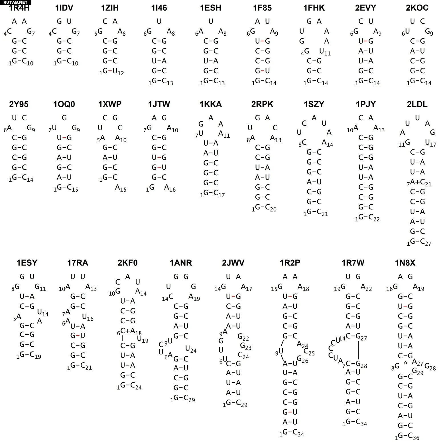 Парные основания и упрощенная структура смоделированных РНК-шпилек. Автор: доцент Тадаси Андо / Токийский университет науки, Япония