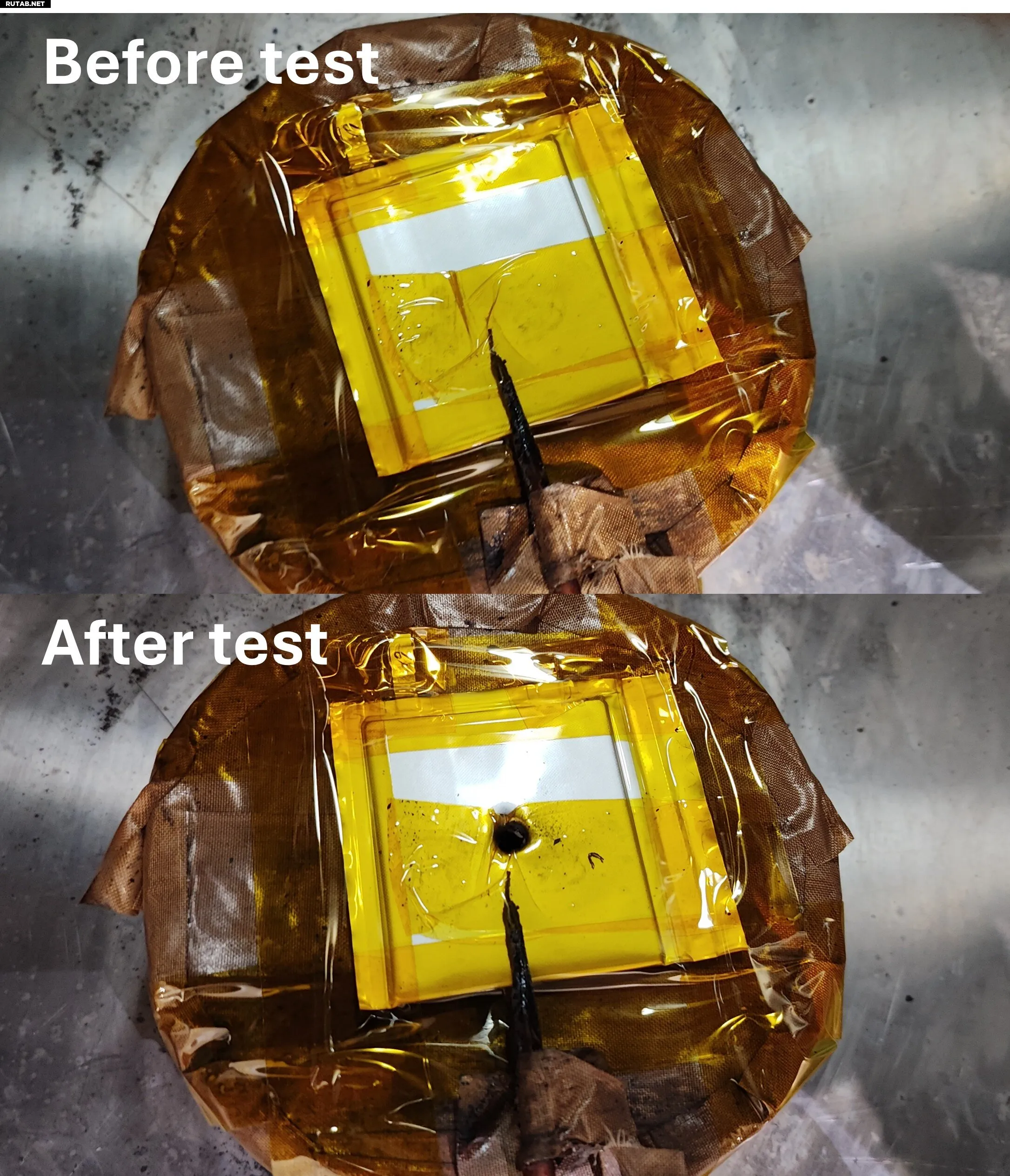 Коммерческий электролит до и после теста гвоздем. Проф. И-Чунь Лу, Китайский университет Гонконга.