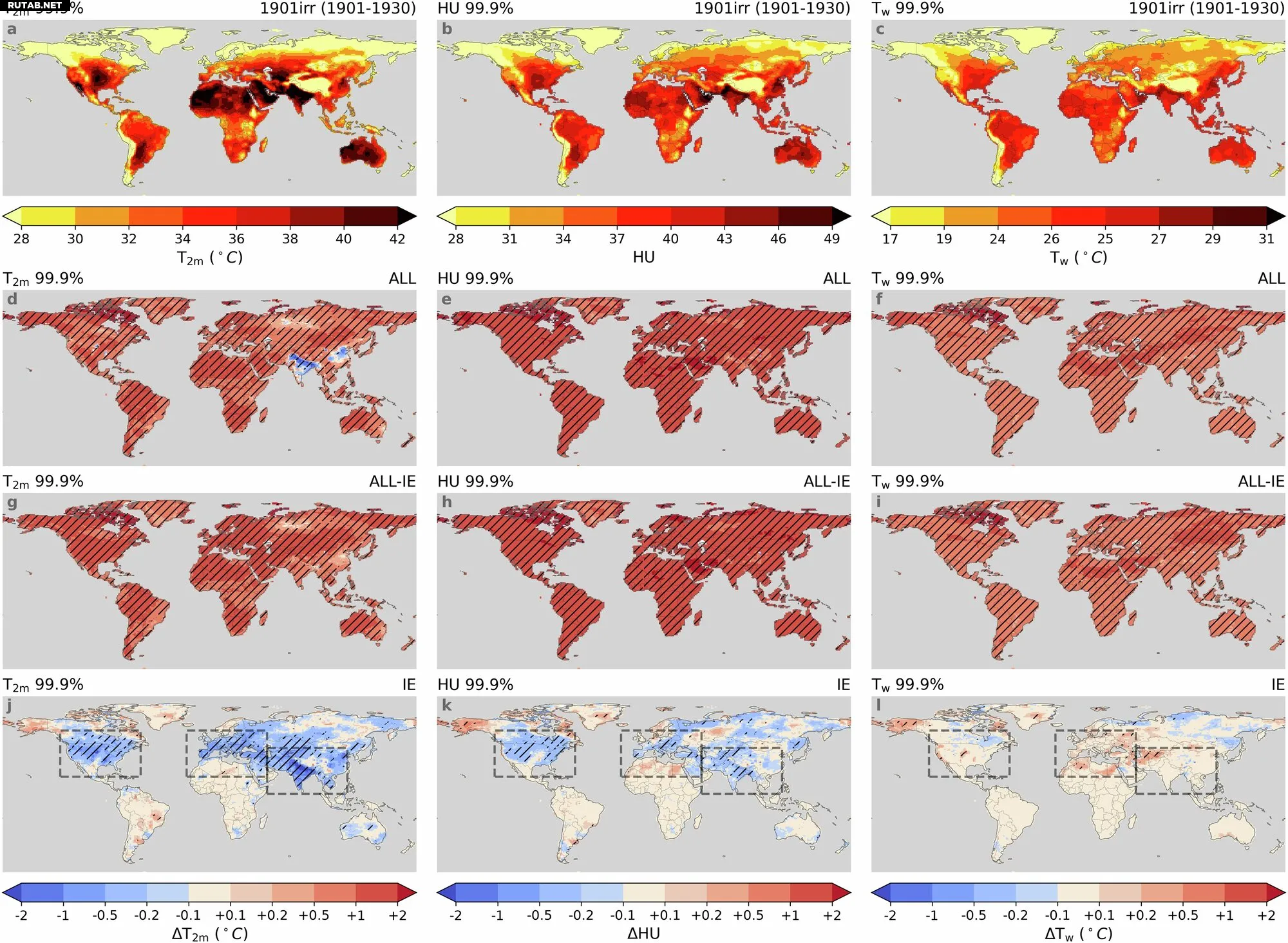 Первое исследование, опубликованное в Nature Communications, проанализировало данные за 1901–2014 годы. Учёные обнаружили, что хотя орошение снижает экстремальные «сухие» температуры, оно одновременно повышает влажность воздуха. Это ослабляет положительный эффект и усиливает опасную «влажную жару».