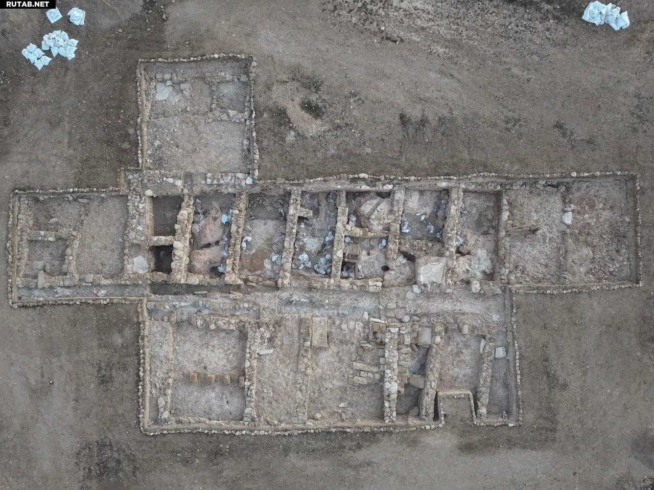 Археологи обнаружили в этом районе как минимум четыре сооружения: самое большое, прямоугольное в плане, состояло из рядов комнат, которые впоследствии были разделены внутренними стенами, что свидетельствует о его перестройке с течением времени. К югу от него располагались еще два здания, одно из которых имело большой зал, поддерживаемый каменными основаниями. Другое сооружение, расположенное к востоку от него и построенное по иной ориентации, предполагает либо другую фазу строительства, либо более позднюю модификацию.