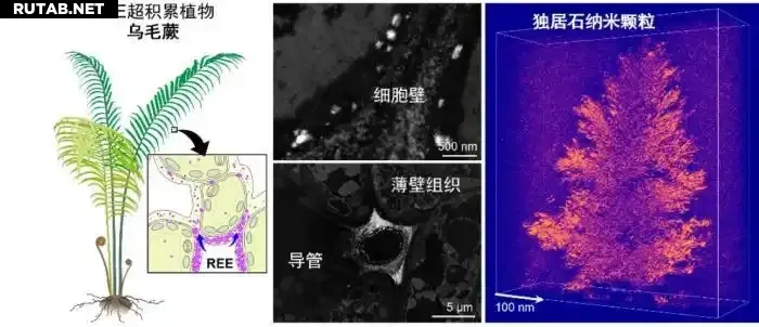 Согласно исследованию, в сосудистых пучках и эпидермальных тканях листьев РЗЭ, поглощенные из почвы, осаждаются в форме наночастиц и далее кристаллизуются в редкоземельные фосфатные минералы.
