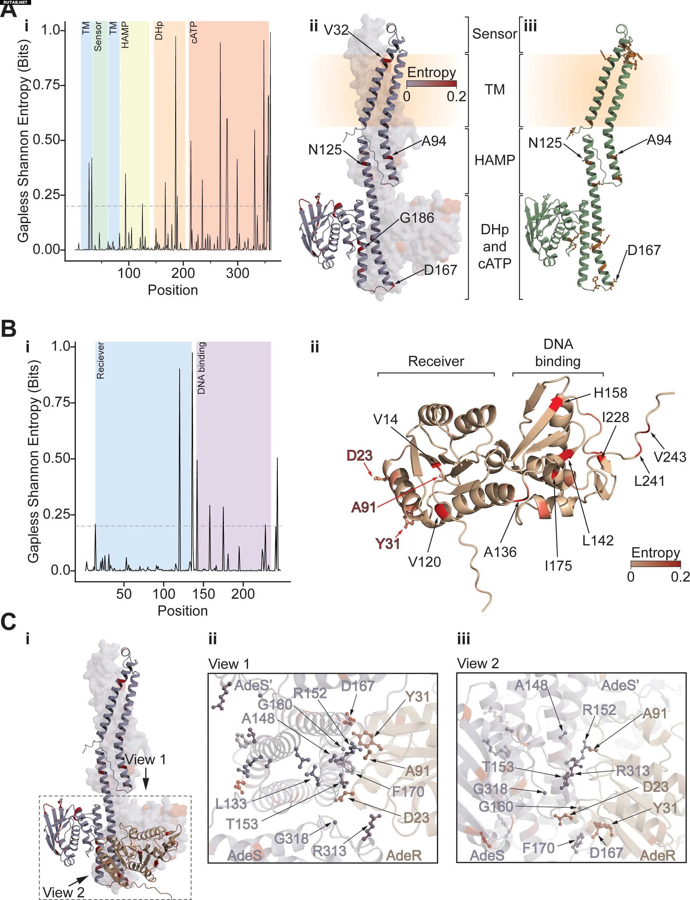 Анализ позиционной энтропии AdeSR и распределения вариантов в морбидостате. Автор: Antimicrobial Agents and Chemotherapy (2025). DOI: 10.1128/aac.00809-25