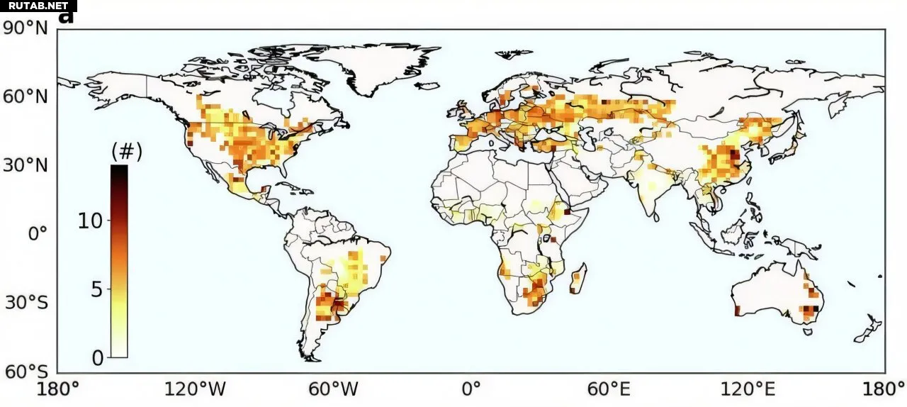 Глобальная частота засух в период 2003–2019 гг. Автор: Nature Sustainability (2025). DOI: 10.1038/s41893-025-01662-1