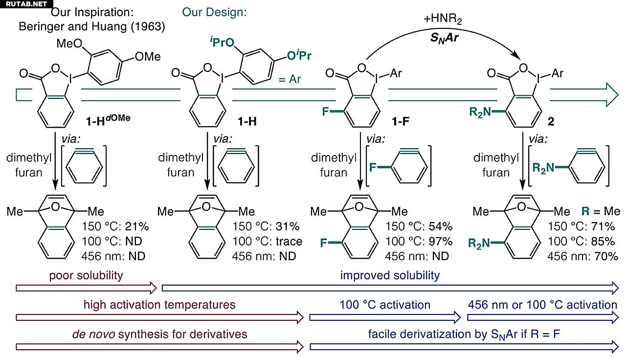 Традиционные методы получения аренов требуют жестких условий, использования сильных оснований и часто приводят к нежелательным побочным реакциям. Новый подход решает эти проблемы за счет введения изопропоксильных групп в о-иодониобензоаты, что увеличивает растворимость и подавляет побочные реакции.