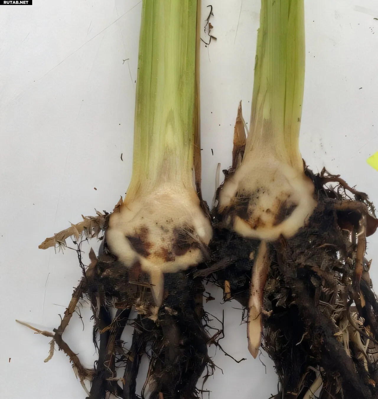 Характерное побурение сосудистой системы, указывающее на внутренние симптомы фузариозного увядания. Автор: Рикардо Пачеко CIBE/ESPOL