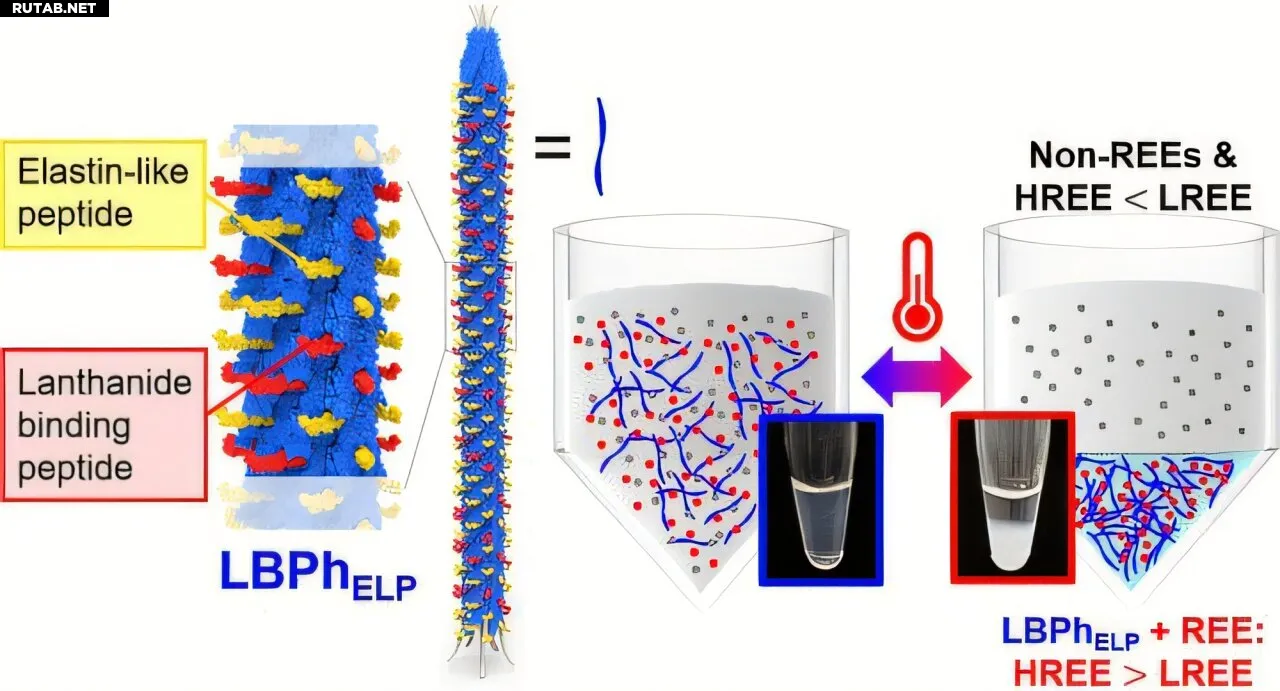 Как сообщается в журнале Nano Letters, исследователи модифицировали безвредный бактериофаг, добавив на его поверхность два специализированных белка. Один белок действует как «молекулярная лапа», избирательно захватывающая ионы РЗЭ, а второй работает как температурный переключатель.