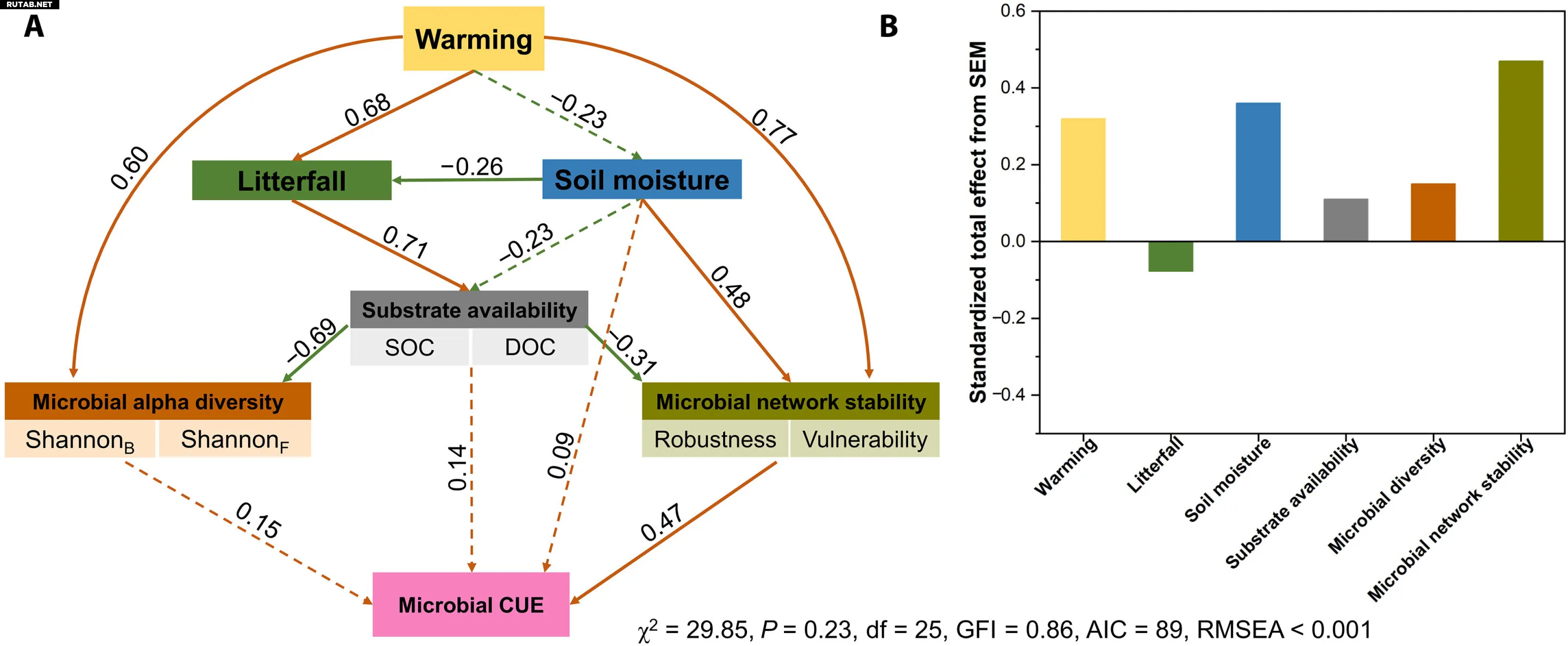 Структурная модель влияния долгосрочного потепления на эффективность использования углерода микробами. Автор: Science Advances (2025)