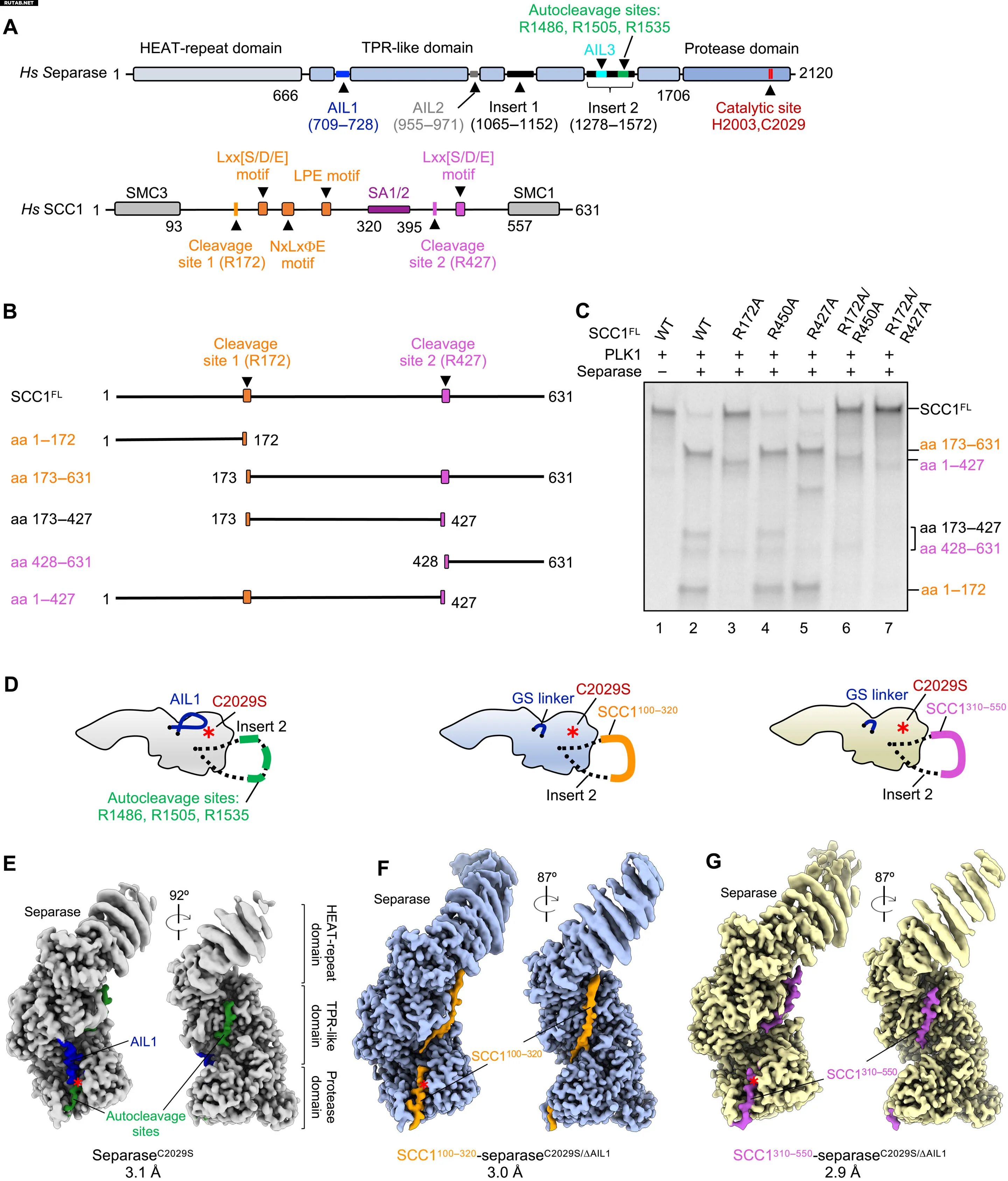 Разрушение SCC1 в двух участках и реконструкции человеческой сепаразы методом крио-ЭМ. Автор: Science Advances (2025). DOI: 10.1126/sciadv.ady9807