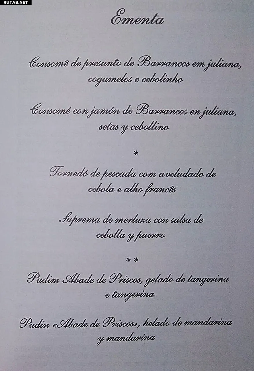 Интересный пример — консоме из барабанкосского хамона, поданное королю Испании Фелипе VI в 2016 году. Это французский суп с ключевым португальским продуктом, поданный монарху страны, знаменитой своим хамоном. «Это можно расценить как гастрономический вызов», — заключил Кабрал.