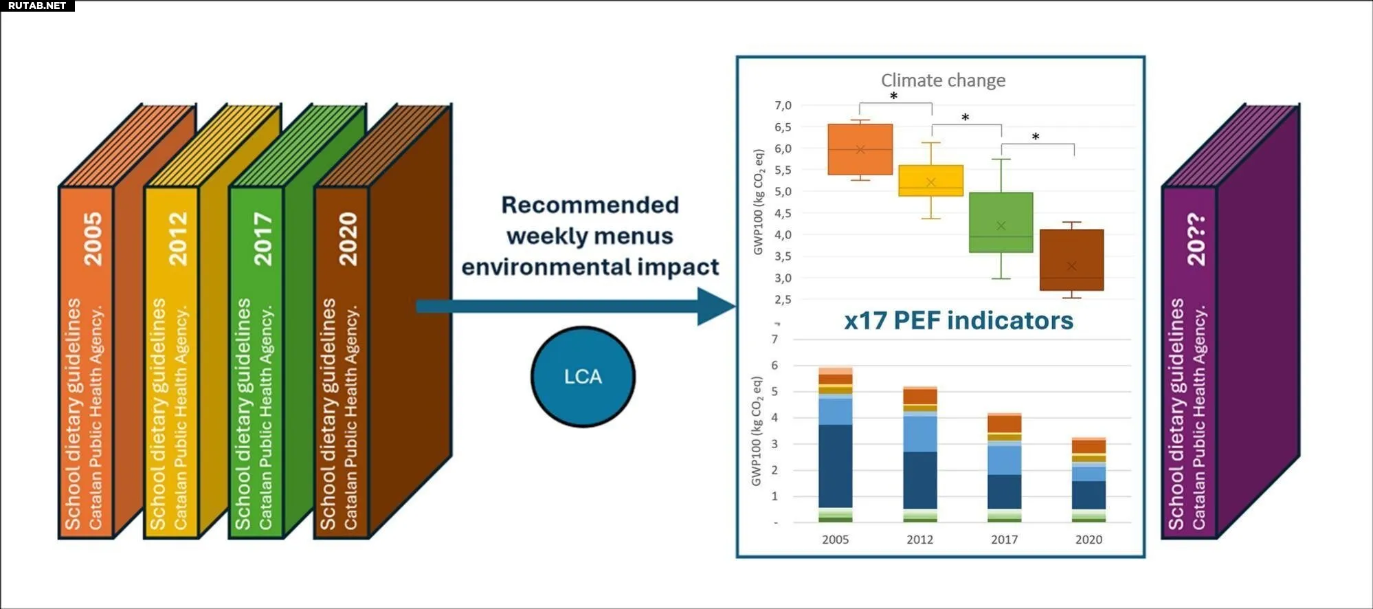 Учёные проанализировали рекомендации по питанию для школ Каталонии, которые обновлялись в 2005, 2012, 2017 и 2020 годах. По сравнению с исходными рекомендациями 2005 года, обновления 2012, 2017 и 2020 годов снизили экологический след на 9%, 22% и 40% соответственно.