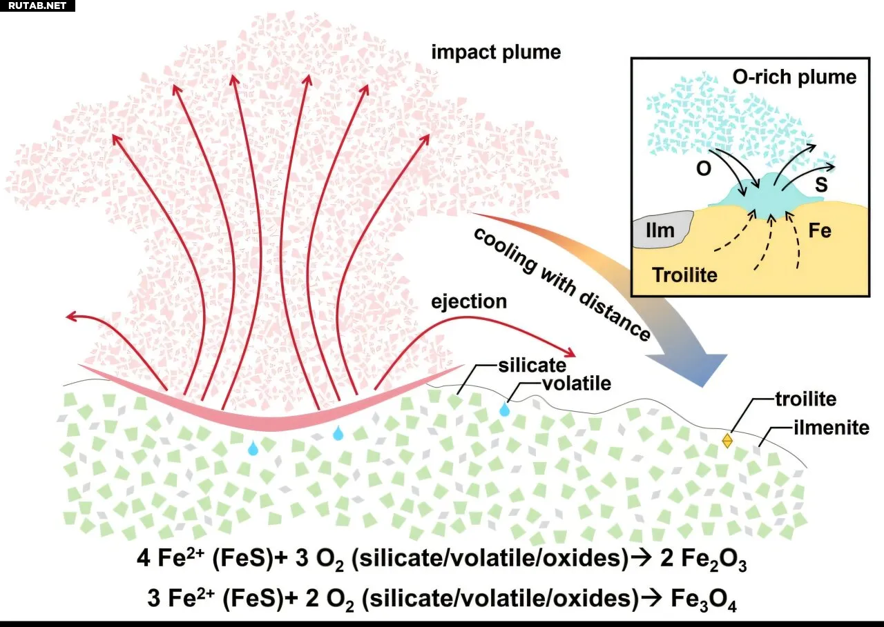Исследование предполагает, что образование гематита тесно связано с крупными ударными событиями в лунной истории. Экстремальные температуры, генерируемые большими ударами, могли испарить поверхностные материалы, создав переходную среду с высокой кислородной активностью. Одновременно этот процесс вызвал десульфуризацию троилита; высвободившиеся ионы железа затем окислялись в этой среде и подвергались парофазному осаждению, формируя микрокристаллический гематит.