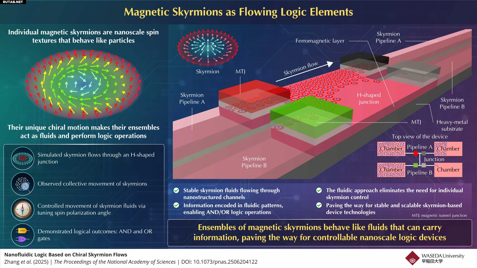 Ученые из Университета Васэда в Японии разработали новый подход к созданию наноразмерных логических устройств, используя коллективное поведение магнитных скирмионов — частицеподобных спиновых текстур в магнитных материалах.