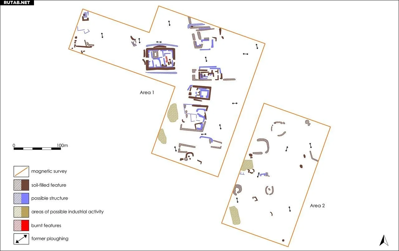Карта объектов, выявленных с помощью геофизической разведки Archaeological Services Даремского университета. Автор: M. Radivojević et al., Antiquity (2025)