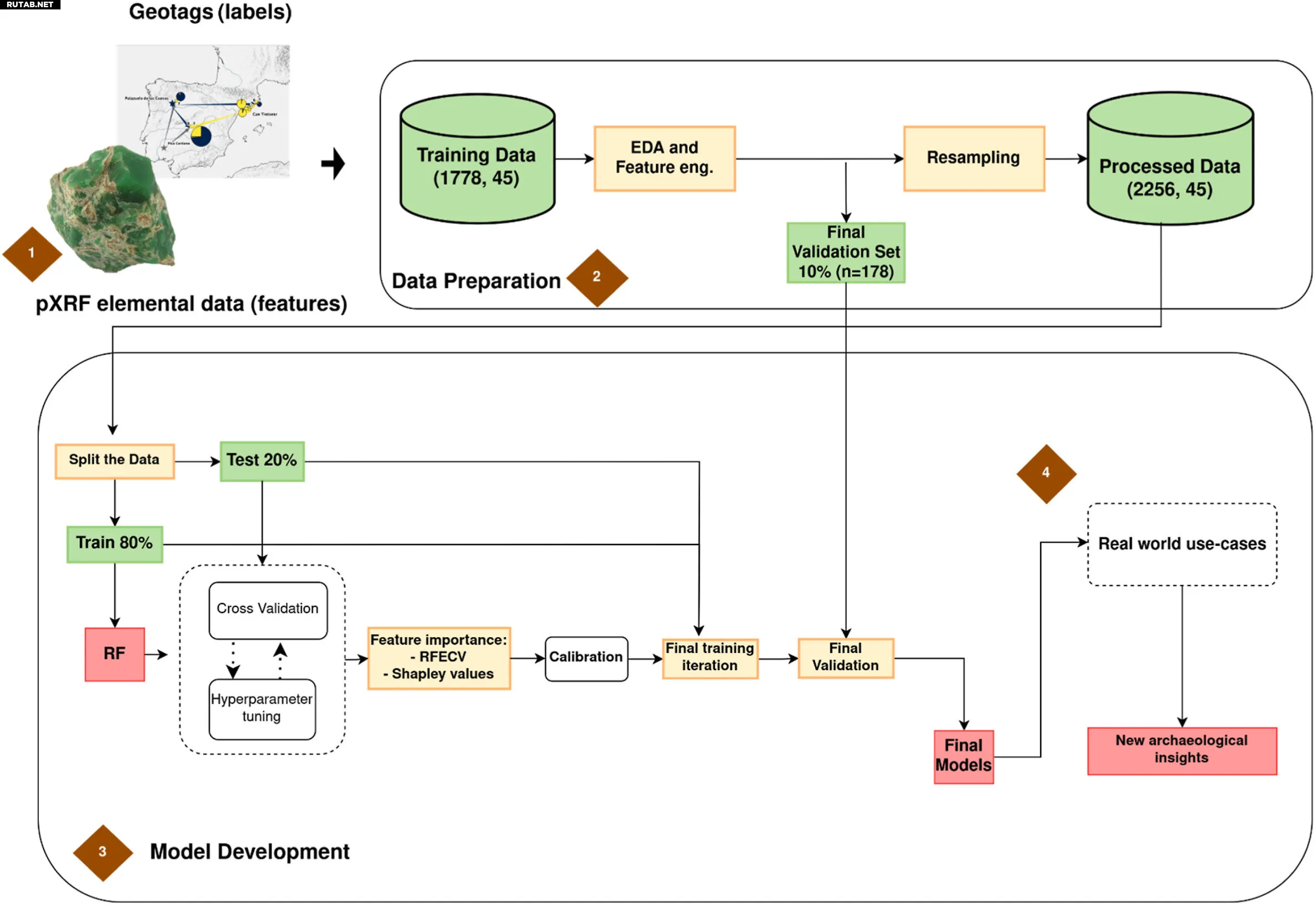 Благодаря этому подходу команда смогла с точностью 95% предсказать геологическое происхождение археологических объектов из варцизита. Была создана обширная база данных, содержащая более 1800 геологических образцов и 571 археологическую находку, проанализированных с помощью портативной рентгеновской флуоресценции.