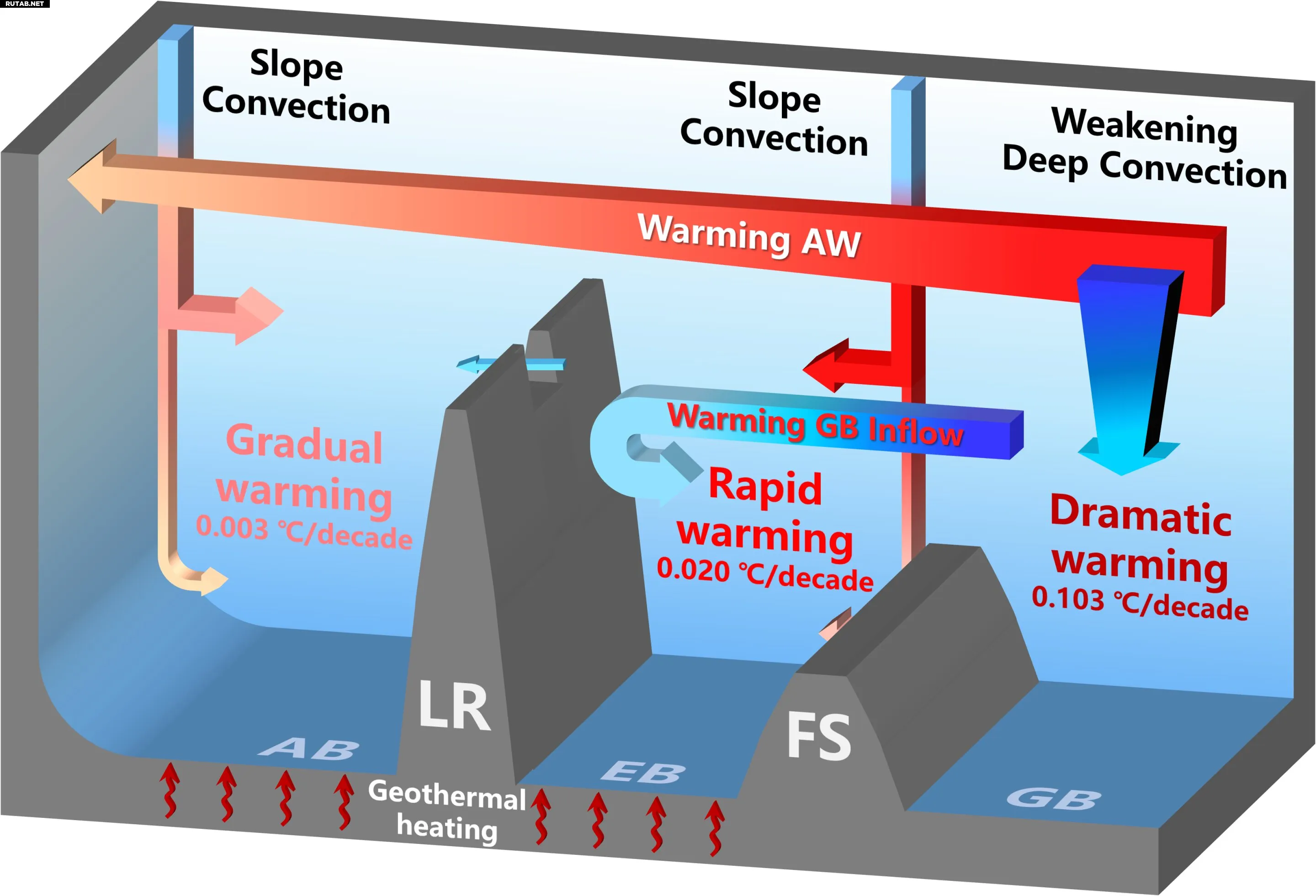 В течение многих лет учёные полагали, что любое потепление этих холодных глубин связано с геотермальным нагревом, то есть теплом, медленно просачивающимся вверх из ядра Земли. Однако недавние наблюдения показали, что скорость потепления в некоторых глубоких районах была выше, чем можно объяснить одним лишь геотермальным нагревом. Поэтому исследователи из Океанологического университета Китая и Лаборатории Лаошань решили изучить этот вопрос. Их исследование опубликовано в журнале Science Advances.