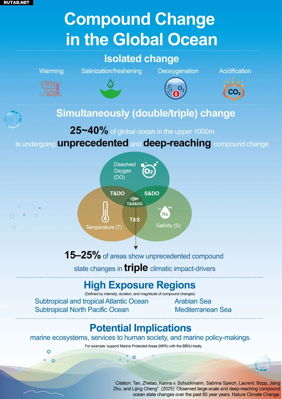 «Океан переживает сильные многомерные изменения», — предупреждает профессор Лицзин Ченг. «Состояние океана трансформируется одновременно в нескольких измерениях, и даже глубокий океан — когда-то считавшийся стабильным — реагирует быстрее, чем мы думали».