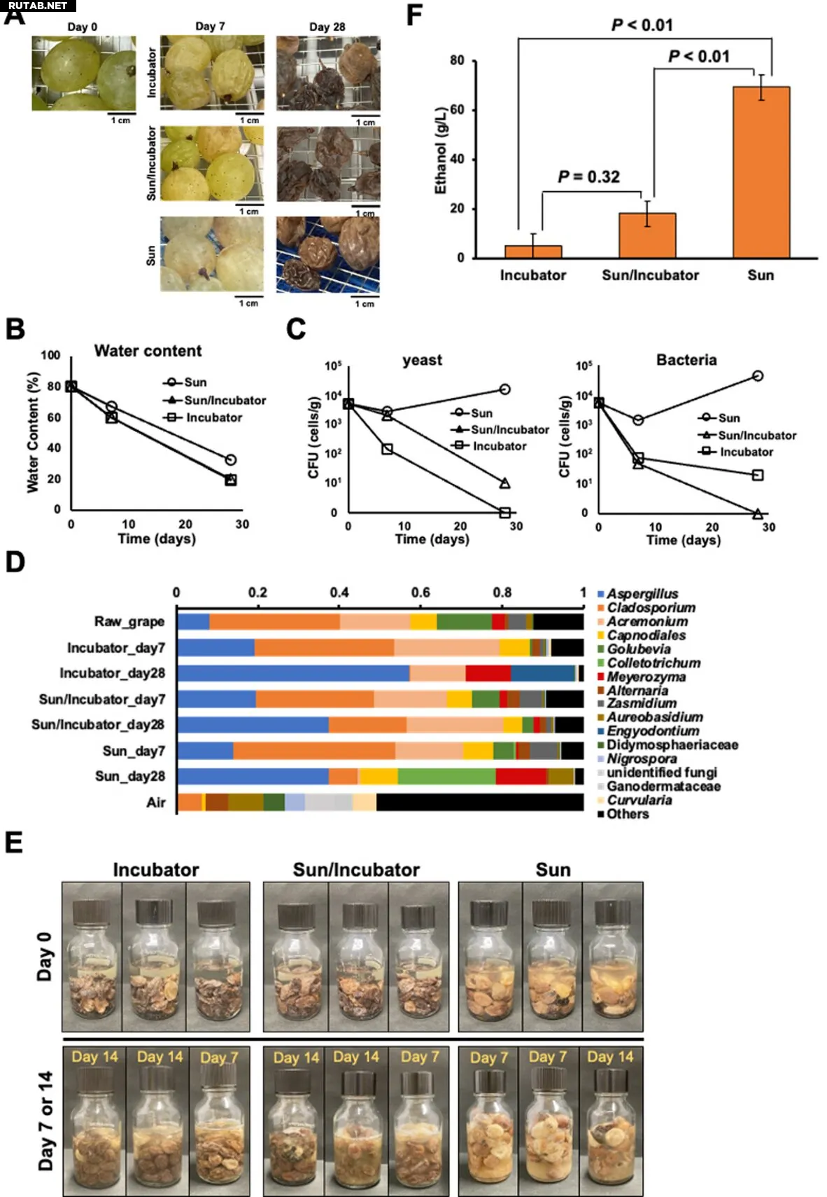 Результаты показали, что только солнечно-высушенный изюм во всех трех образцах успешно ферментировался и давал значительно более высокую концентрацию этанола. В успешных образцах также наблюдалось снижение видового разнообразия микробов при увеличении количества дрожжей, ферментирующих алкоголь.