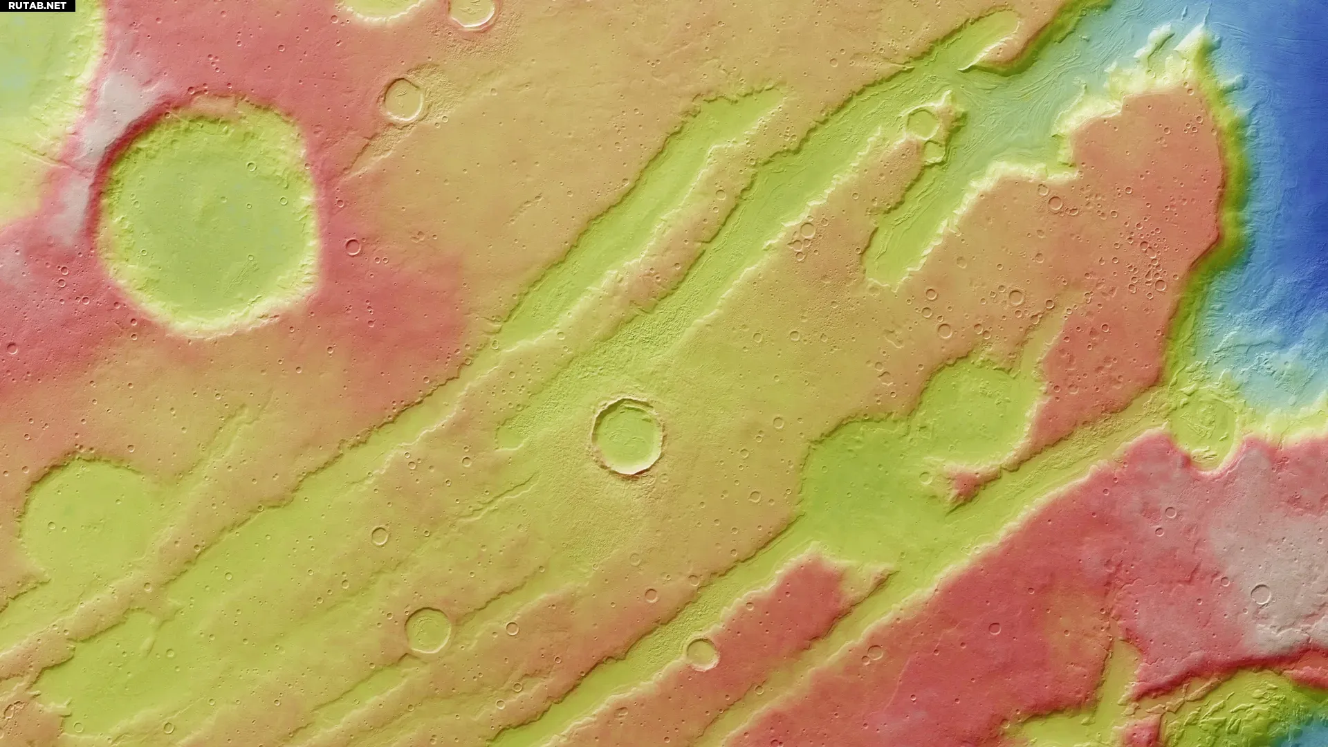 Регион Колое Фоссэ, расположенный на 39° северной широты Марса, демонстрирует характерные текстуры, которые ученые называют «линейным заполнением долин» и «концентрическим заполнением кратеров». Эти образования сформировались, когда медленно движущиеся смеси льда и обломков перемещались по поверхности, подобно ледникам на Земле.